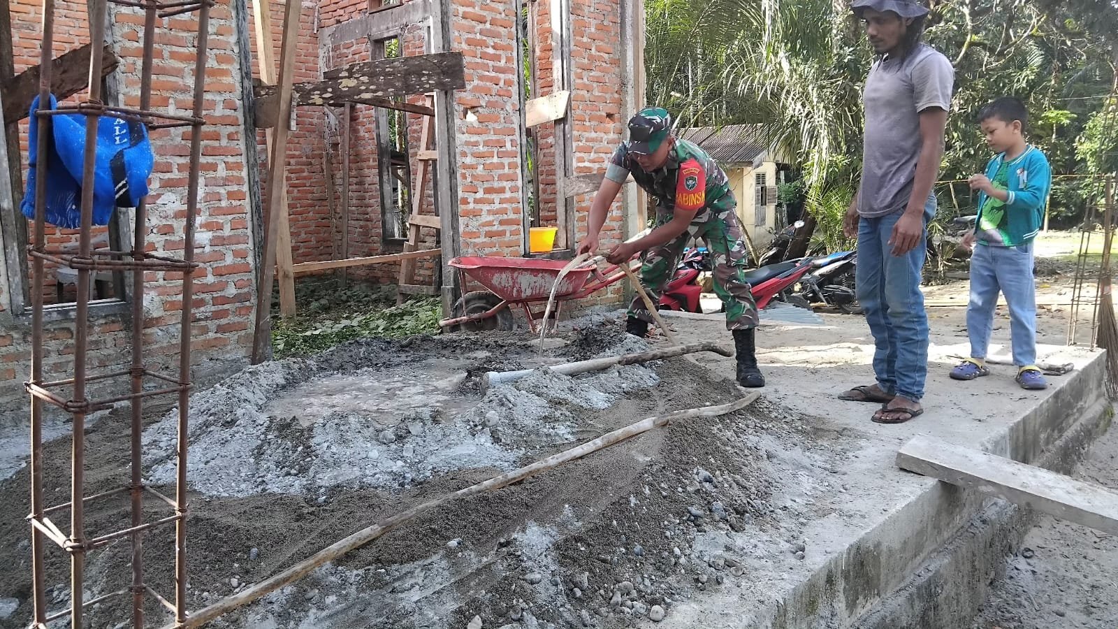 Kegiatan tersebut merupakan bagian dari tugas pembinaan teritorial Babinsa dalam mendukung serta membantu kesulitan masyarakat di wilayah binaan. Dengan semangat gotong royong, Kopda Baihaqi turut terlibat langsung dalam proses pembangunan, mulai dari persiapan hingga pengecoran lantai rumah yang nantinya akan digunakan sebagai tempat tinggal keluarga Amiruddin.