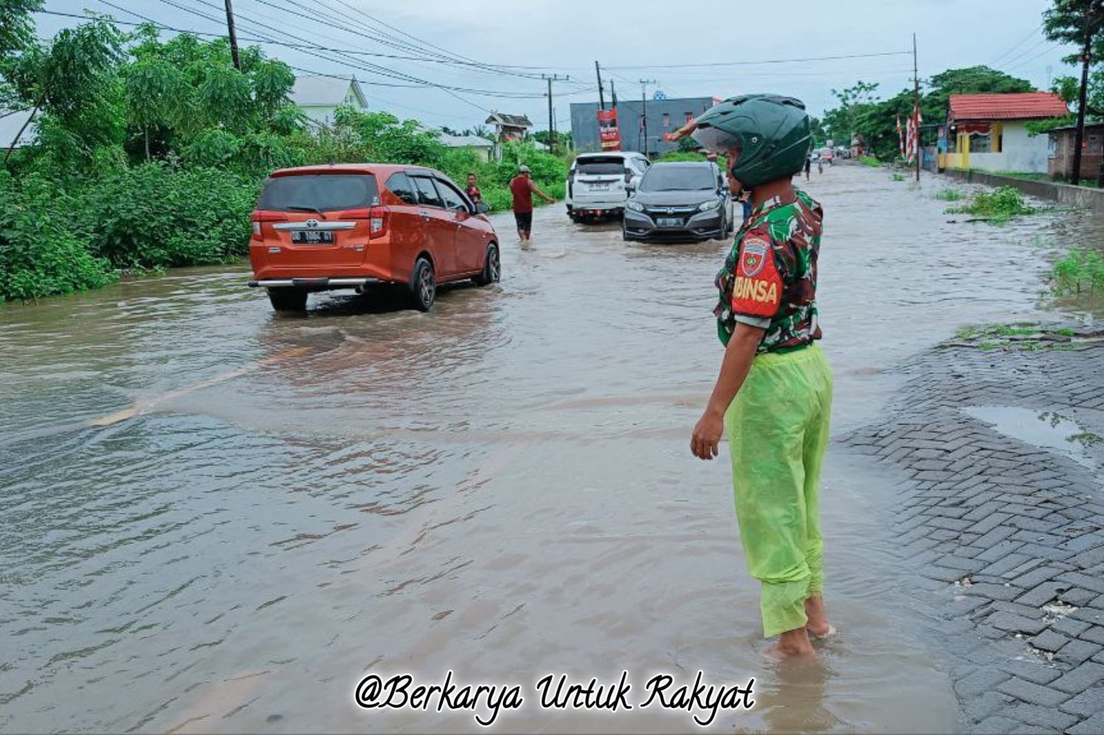 JENEPONTO – Dalam upaya penanggulangan bencana alam banjir yang terjadi di beberapa wilayah teritorial Koramil 03/Tamalatea Kodim 1425/Jeneponto, Babinsa jajarannya dengan sigap dan cepat turun langsung ke lokasi membantu warga dan pengguna jalan yang terdampak banjir.