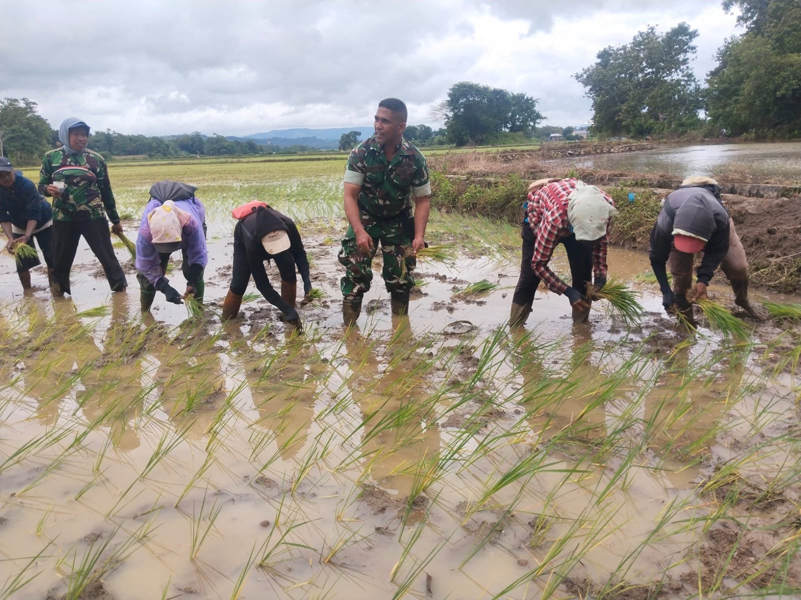 SUMBA TENGAH – Dalam upaya memperkuat ketahanan pangan, Sertu Ananias Valentim, anggota dari Koramil 03/Katikutana yang tergabung dalam Kodim 1613/Sumba Barat, melaksanakan komunikasi sosial (Komsos) dengan membantu petani dalam kegiatan penanaman padi. Kegiatan tersebut berlangsung di Desa Mataredi, Kecamatan Katikutana, Kabupaten Sumba Tengah pada hari Minggu, 25 Januari 2026.