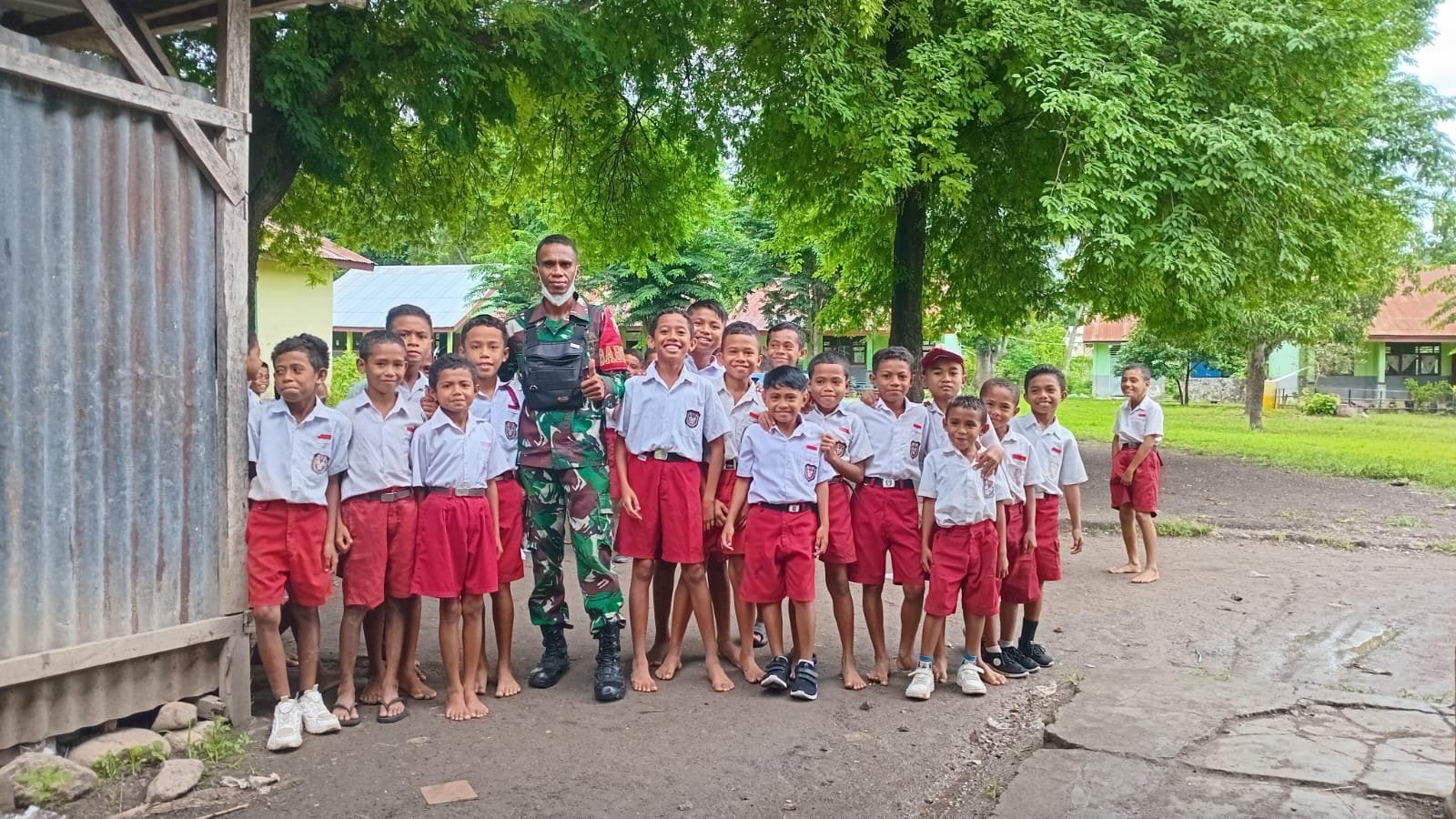 TTS _ Babinsa Koramil 1621-01/Kota So’e Koptu Alfredo Da Costa melaksanakan komsos berikan arahan tentang menjadi anak yang disiplin dengan siswa Siswi SDN Bouentuka yang berlokasi di Kecamatan Batu Putih Kabupaten Timor Tengah Selatan