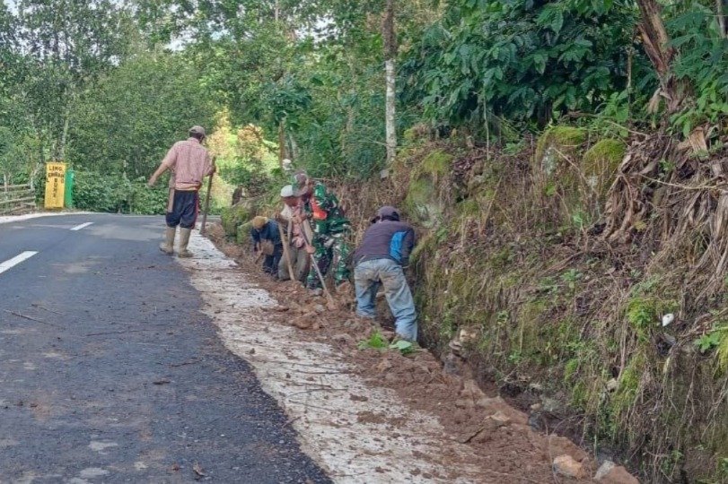 Kali ini dengan penggalian selokan dan pembersihan jalan agar saat turun hujan air tidak menggenang di jalan yang dapat membahayakan pengguna jalan terutama pengendara roda dua.