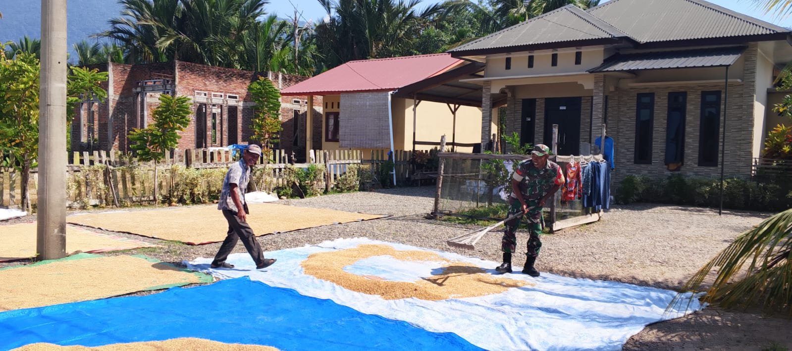 Babinsa Koramil 01/Jaya Bantu Warga Jemur Padi di Desa Lamtui, Sebagai Bentuk Kepedulian