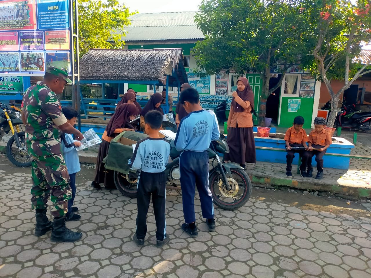 Aceh Jaya– Dalam rangka menumbuhkan kecintaan terhadap literasi sejak dini, Babinsa Koramil 01/Jaya Kodim 0114/Aceh Jaya, Koptu Rahmat Putra, melaksanakan kegiatan “Motor Pintar” yang inovatif. Kegiatan edukatif ini dipusatkan di lingkungan Sekolah Dasar Negeri (SDN) 1 Jaya, Desa Pasar Lamno, Kecamatan Jaya, Kabupaten Aceh Jaya, dengan tujuan utama mengajak anak-anak didik untuk lebih gemar membaca buku.Sabtu (13/09).