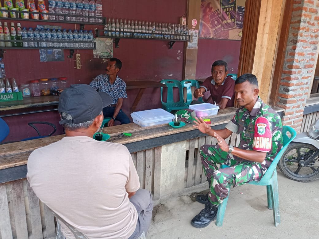 ACEH JAYA – Dalam rangka memelihara dan memperkuat hubungan silaturahmi serta menjaga stabilitas keamanan di wilayah binaan, Babinsa Koramil 01/Jaya, Kodim 0114/Aceh Jaya, Kopka Irman, melaksanakan kegiatan Komunikasi Sosial (Komsos) dengan masyarakat di Pasar Lamno, Kecamatan Jaya, Kabupaten Aceh Jaya. Kegiatan ini bertujuan untuk menyampaikan pesan-pesan kamtibmas dan mempererat interaksi antara Babinsa dengan warga setempat.