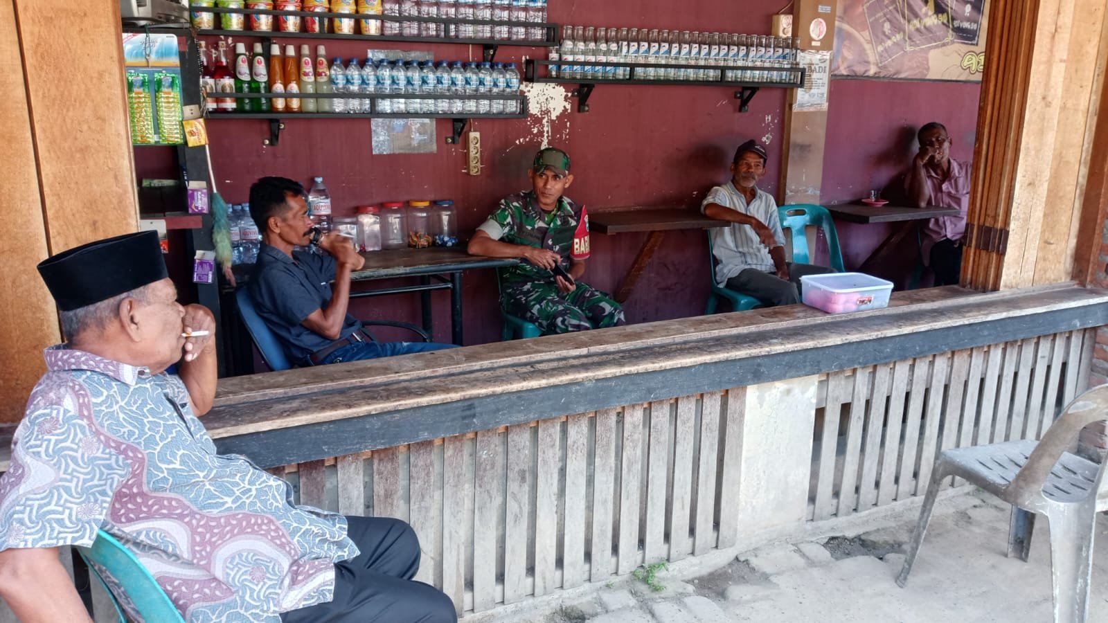 ACEH JAYA — Babinsa Koramil 01/Jaya Kodim 0114/Aceh Jaya, Serda Yunadi, melaksanakan komunikasi sosial (komsos) bersama masyarakat di Desa Krueng Tunong, Kecamatan Jaya, Kabupaten Aceh Jaya.