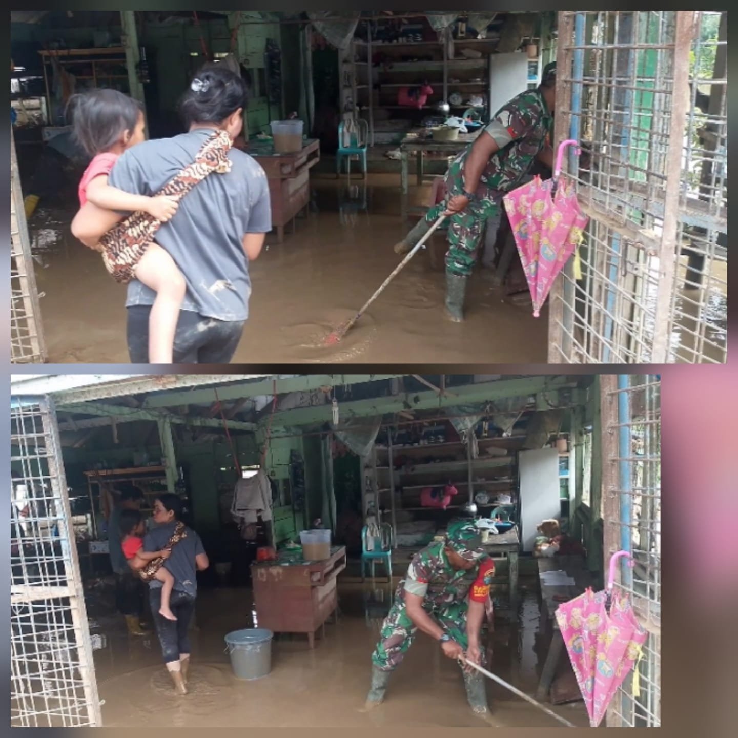 “Kami turun langsung bersama warga untuk membersihkan rumah yang terdampak banjir. Ini merupakan bentuk kepedulian dan tugas kami sebagai Babinsa untuk selalu berada di tengah masyarakat dalam kondisi apa pun,” ujarnya.
