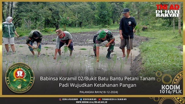 Palangka Raya – Babinsa Koramil 02/Bukit Batu Kodim 1016/Plk Pelda Dedy Hariyadi bersama warga melaksanakan percontohan penanaman padi dari dinas pertanian kota bertempat di km 30 lahan milik bapak Suyatno anggota kelompok tani Palangka Raya,Kelurahan Tumbang Tahai, Kecamatan Bukit Batu,Kota Palangka Raya , Rabu (18/12/2024).