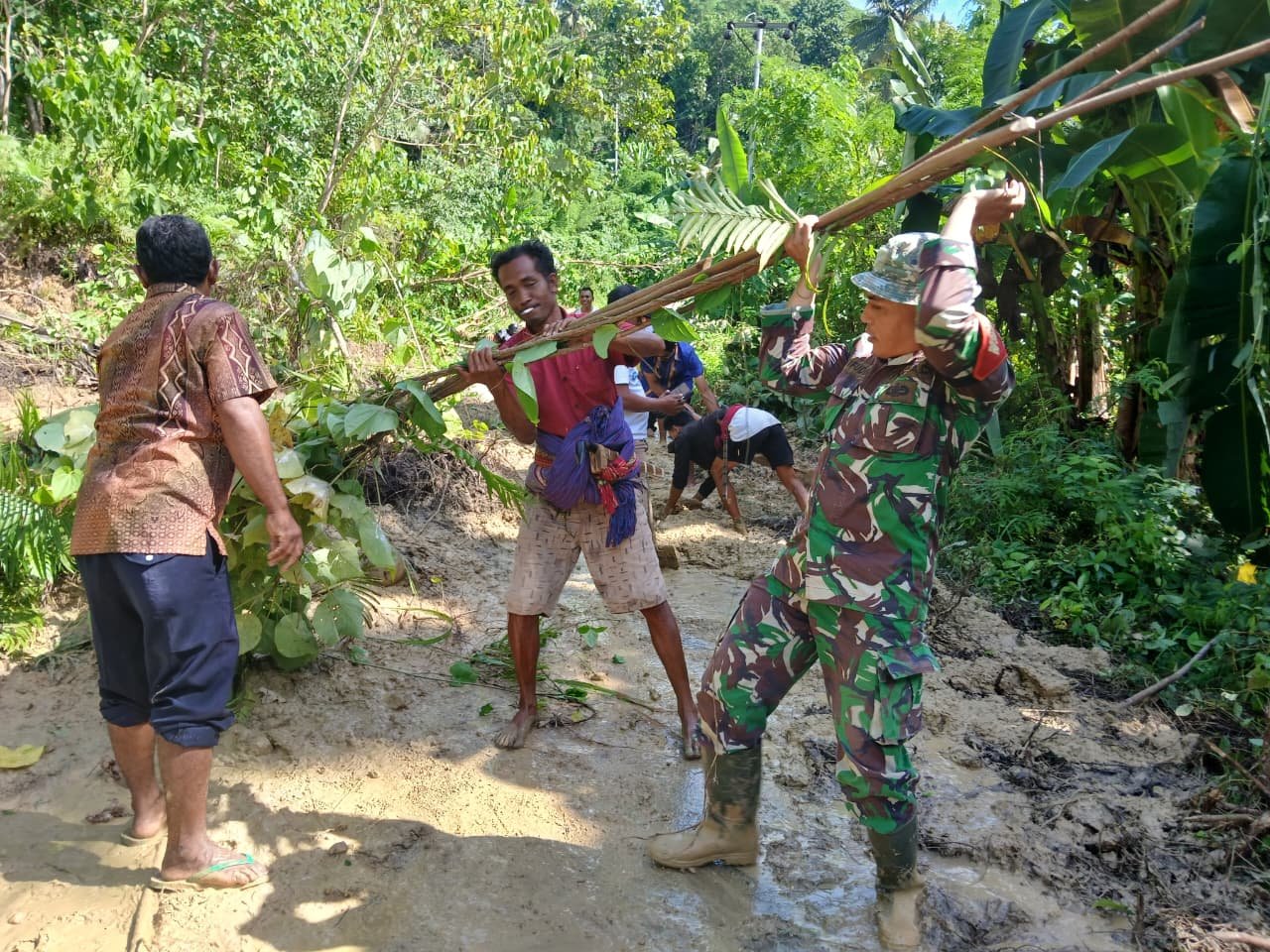 Sertu Arifudin menjelaskan bahwa partisipasi Babinsa dalam kegiatan ini adalah bagian dari tugas pembinaan teritorial serta sebagai bentuk kepedulian TNI terhadap masyarakat di wilayah binaan. “Sebagai aparat kewilayahan, kami harus selalu hadir di tengah masyarakat, terutama saat mereka mengalami kesulitan. Melalui gotong royong, pekerjaan berat menjadi lebih ringan dan akses jalan dapat segera digunakan kembali,” ujarnya.