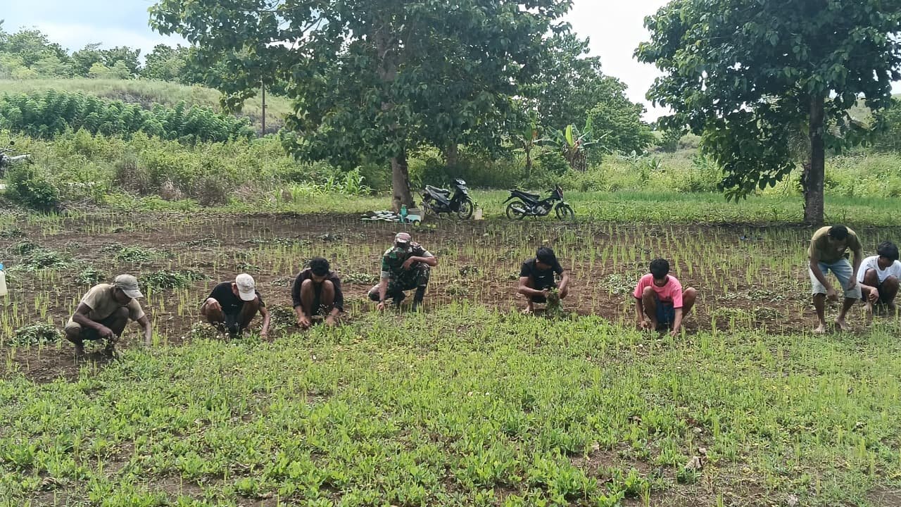 SUMBA TENGAH – Sebagai bentuk perhatian terhadap ketahanan pangan lokal, Babinsa dari Koramil 03/Katikutana Kodim 1613/Sumba Barat, Serma Suherman, bersama dengan warga setempat melaksanakan kegiatan perawatan tanaman padi ladang. Kegiatan ini berlangsung di Desa Anakalang, Kecamatan Katikutana, pada hari Minggu, 8 Februari 2026.