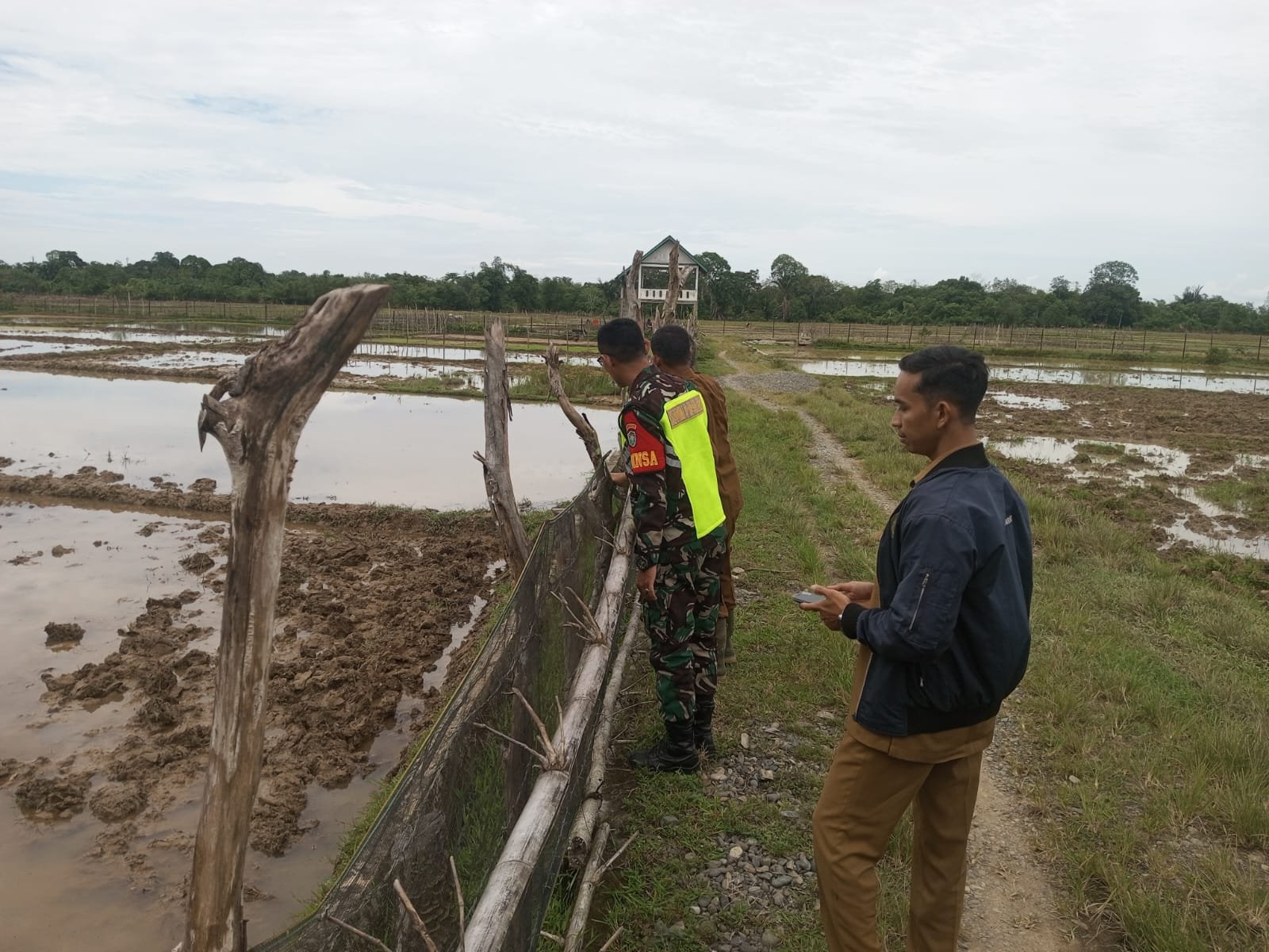 Babinsa Koramil 03 Kaway XVI Serda Darma bersama perangkat Desa cek kondisi sawah