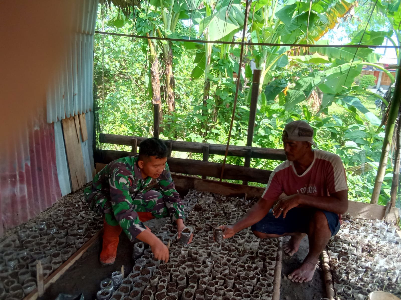ACEH BARAT – mendukung program ketahanan pangan, Sertu Sarwono Babinsa Koramil 03 Kaway XVI membantu warga menyemai bibit semangka bertempat di Desa Tumpok Ladang Kecamatan Kaway XVI Kabupaten Aceh Barat. Kamis (09/01/2025).