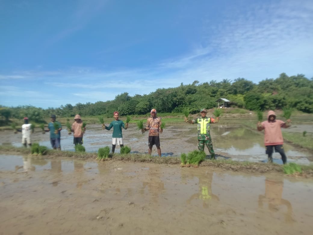 ACEH JAYA – Serka Parwoto, Babinsa Koramil 03/Setia Bakti, dengan penuh semangat bersama anggota Kelompok Tani Tunas Muda Desa Lhok Glumpang, Kecamatan Setia Bakti, hari ini Kamis (10/07), melaksanakan kegiatan penanaman padi perdana. Acara yang berlangsung di lahan seluas 1,5 hektar ini menggunakan bibit padi unggul jenis Inpari 42, menandai dimulainya musim tanam yang diharapkan akan membawa hasil panen melimpah.