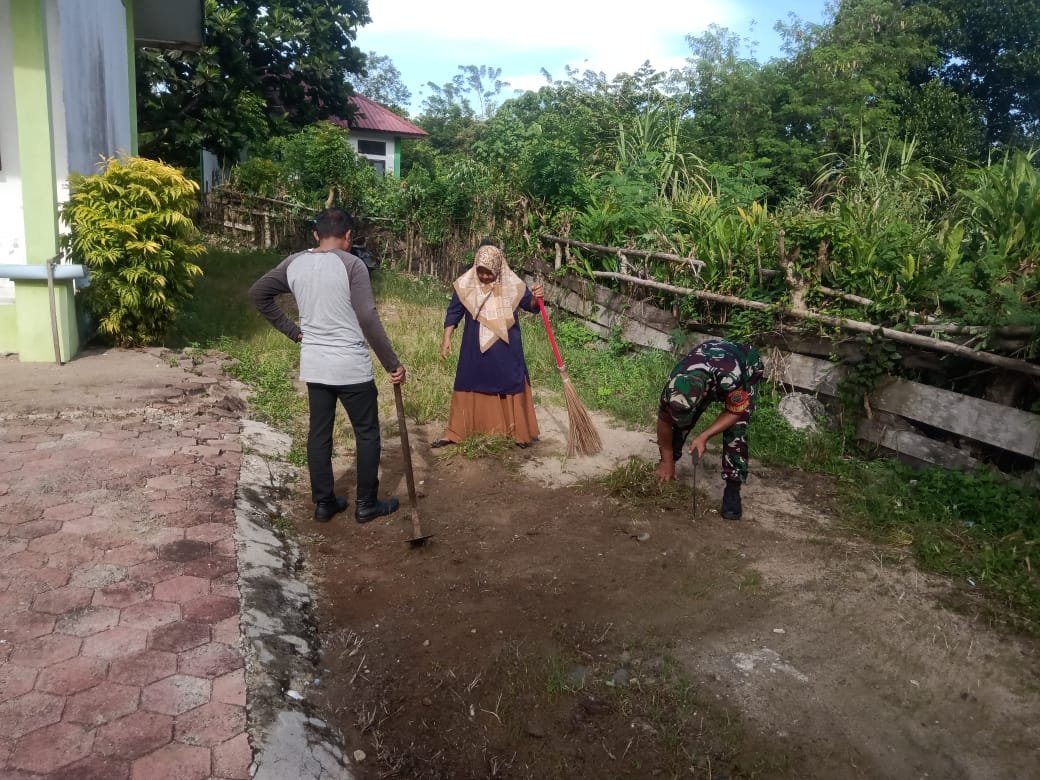 Aceh Jaya – Sebagai wujud nyata sinergitas dan kemanunggalan TNI dengan Aparatur Sipil Negara (ASN) di wilayah binaan, Babinsa Koramil 05/Panga Kodim 0114/Aceh Jaya, Koptu Tatang S, memimpin pelaksanaan kegiatan karya bakti pembersihan pekarangan kantor Balai Penyuluhan Pertanian (BPP) Kecamatan Panga. Kegiatan ini merupakan salah satu bentuk kolaborasi positif antara personel TNI dan ASN di Kecamatan Panga, yang bertujuan untuk meningkatkan kebersihan, keindahan, dan kenyamanan lingkungan kerja.