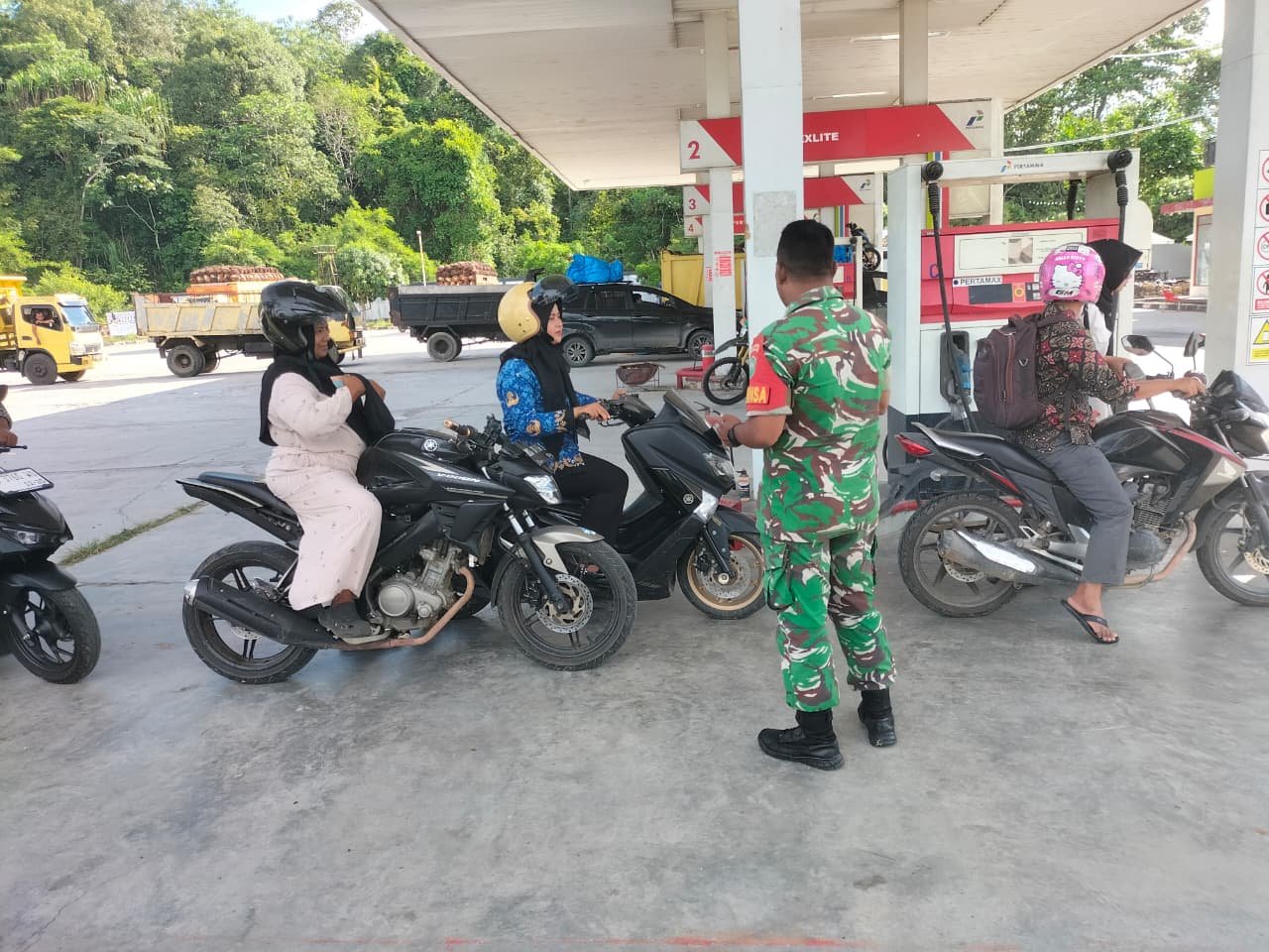 Sertu Astrada Beruh mengatakan bahwa kehadiran Babinsa di lokasi bertujuan untuk memastikan situasi tetap aman serta membantu menjaga ketertiban masyarakat yang sedang mengantre pengisian bahan bakar.