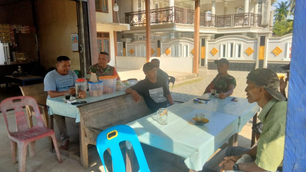 ACEH JAYA — Babinsa Koramil 06/Teunom Kodim 0114/Aceh Jaya, Koptu Sugianto, melaksanakan kegiatan Komunikasi Sosial (Komsos) bersama warga desa binaan di sebuah warung kopi Desa Lueng Gayo, Kecamatan Teunom, Kabupaten Aceh Jaya, Jumat (23/01/2026).