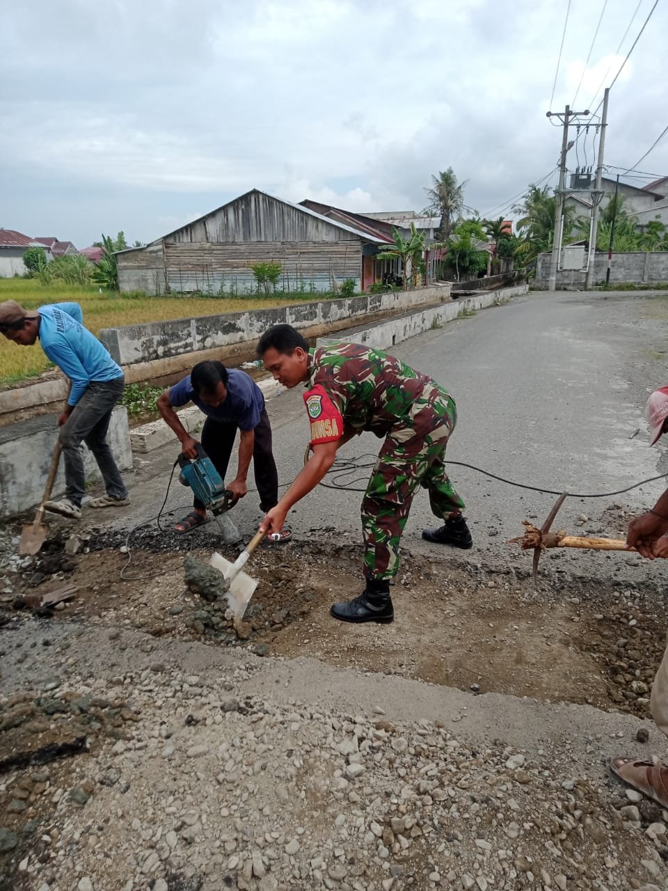 Aceh Barat – Dalam rangka meningkatkan kesejahteraan masyarakat dan memperkuat hubungan dengan masyarakat, Babinsa Koramil 07 Johan Pahlawan, Kodim 0105/Aceh Barat, Sertu Ahmad Khaeruddin, melaksanakan kegiatan Gotong Royong membantu warga Desa Drin Rampak membuat jalan rabat beton. Minggu (16-02-2025).