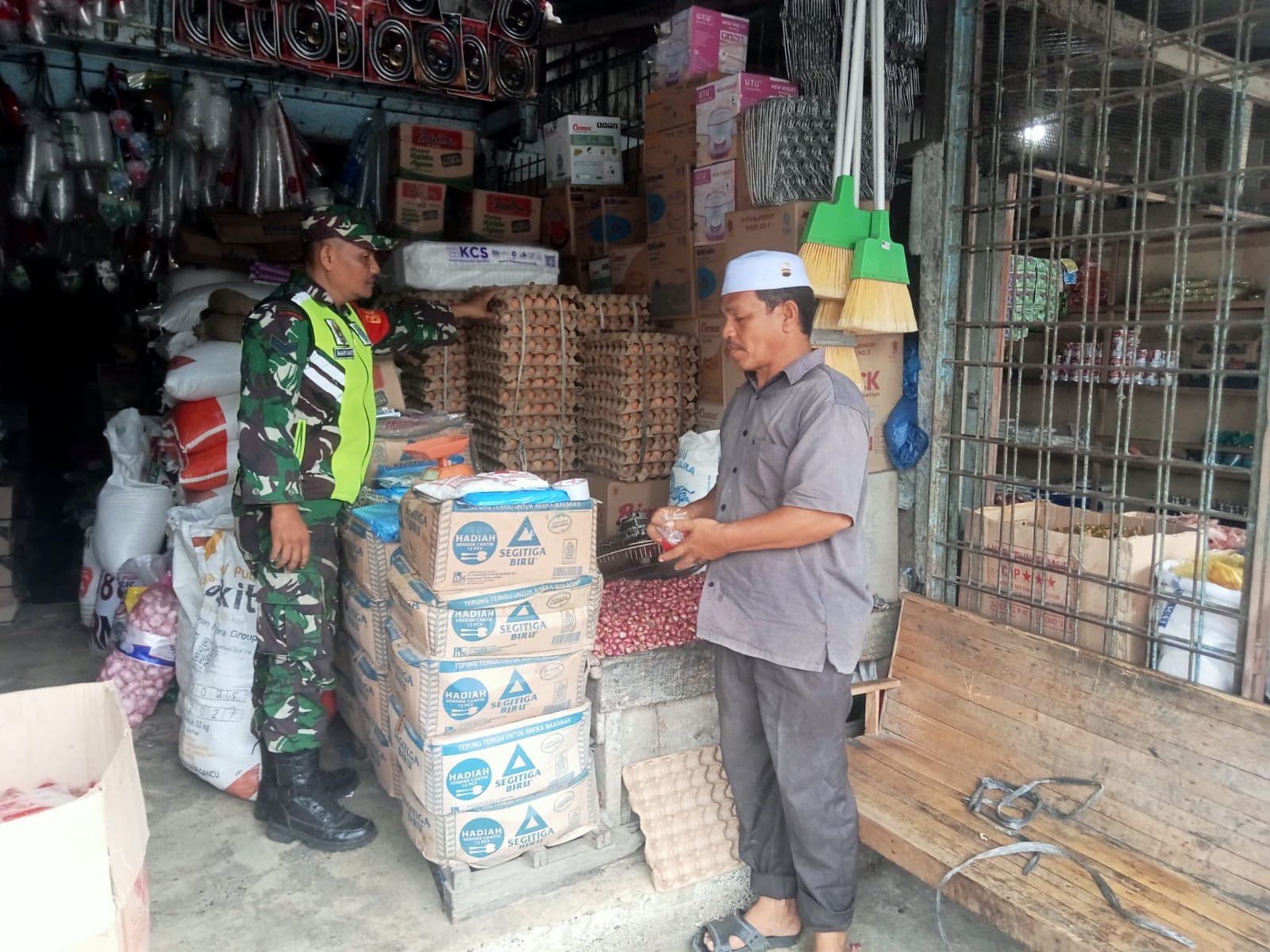 Babinsa Koramil 08/Arongan Lambalek Cek Harga Sembako di Pasar Desa Teupin Peuraho