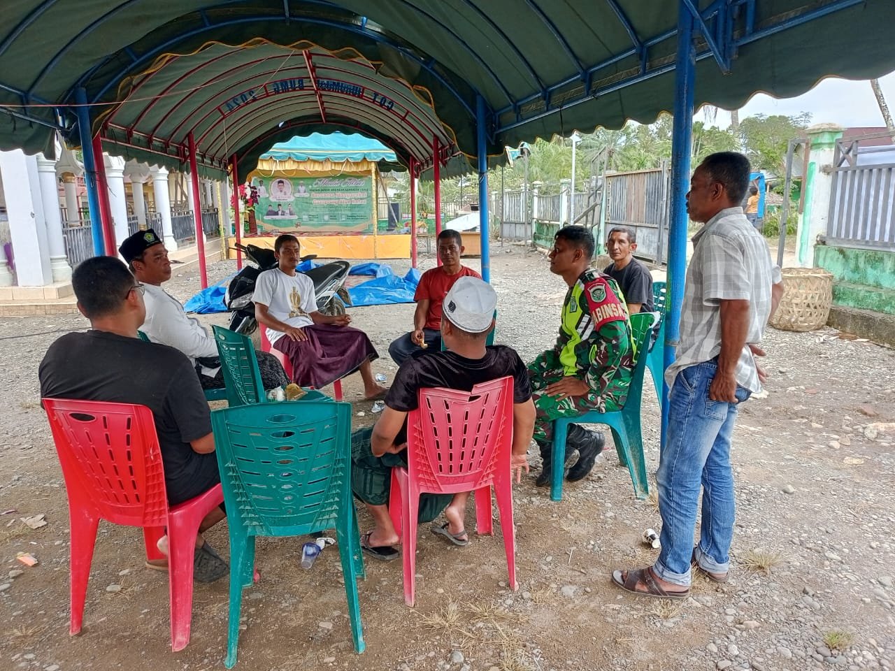 ACEH BARAT – Setelah membantu masyarakat dalam pemasangan teratak untuk keperluan kegiatan desa, Babinsa Koramil 08/Arongan Lambalek Kodim 0105/Aceh Barat, Serka Heri J, melanjutkan kegiatan komunikasi sosial (Komsos) bersama warga Desa Alue Batee, Kecamatan Arongan Lambalek, Kabupaten Aceh Barat, Jumat (21/11/2025).