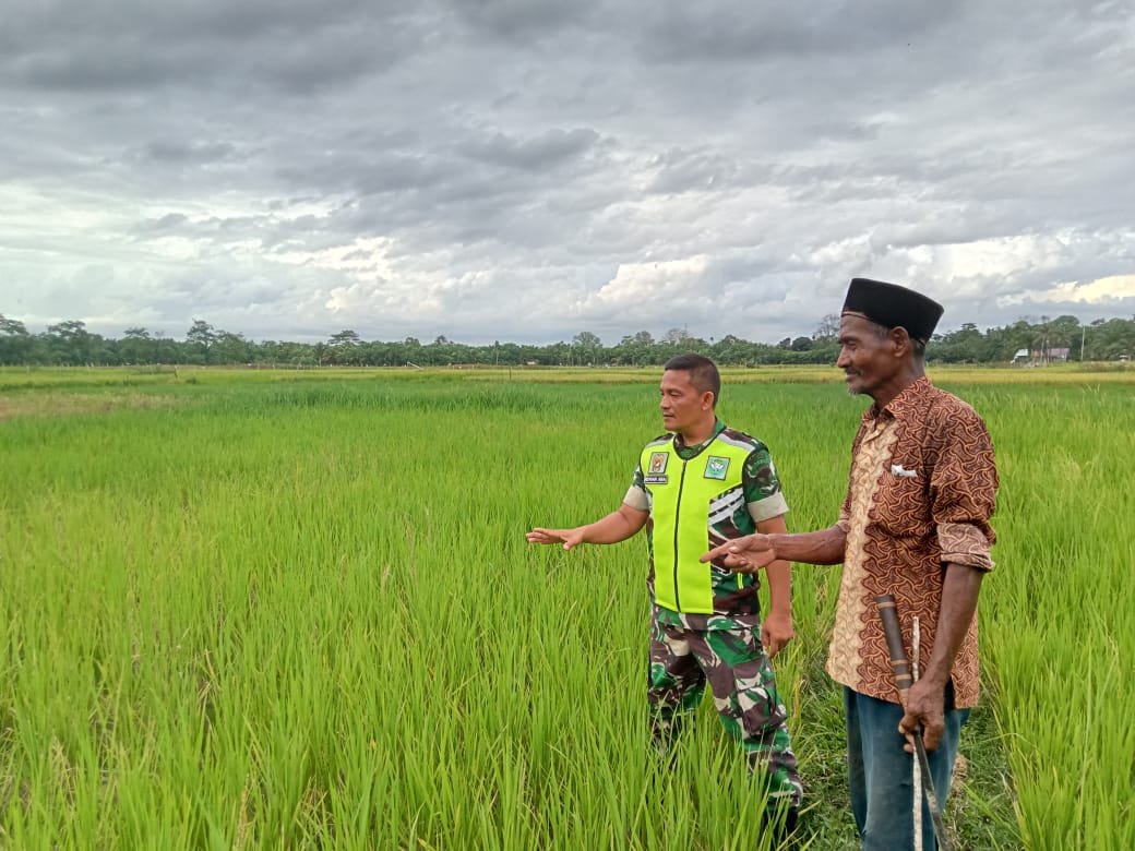 ACEH BARAT – Dalam upaya mendukung ketahanan pangan dan kesejahteraan petani, Babinsa Koramil 08 Arongan Lambalek Kodim 0105/Abar, Sertu Maryanto, turun langsung ke sawah untuk memantau pertumbuhan tanaman padi milik warga di Desa Simpang Peut, Kecamatan Arongan Lambalek, Kabupaten Aceh Barat, Jum’at (14/02/2025).