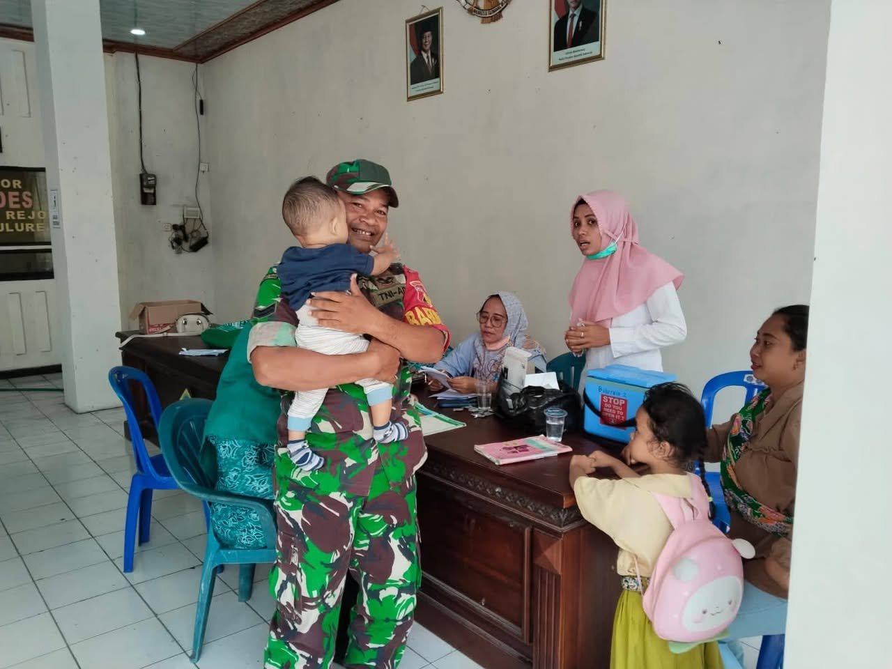 Gresik – Sebagai bentuk kepedulian terhadap kesehatan masyarakat, Babinsa Koramil 0817/10 Benjeng, Sertu Untung, turut serta dalam pendampingan kegiatan Pos Pelayanan Terpadu (Posyandu) Balita yang digelar di Balai Desa Bulurejo, Kecamatan Benjeng.
