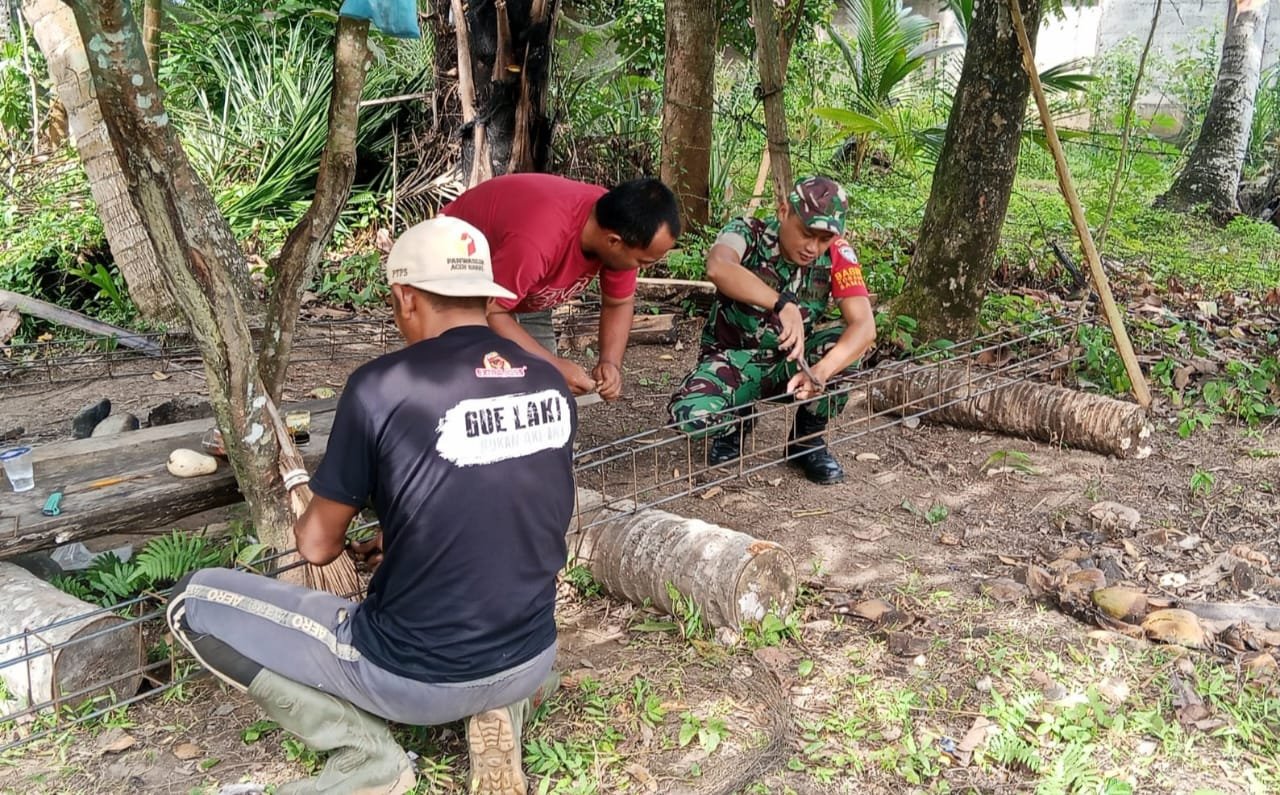 Dengan mengenakan seragam loreng khas TNI dan tangan yang tak segan memegang besi bangunan, Sertu Puguh turut serta dalam proses pengikatan rangka besi pondasi rumah. Kehadirannya bukan sekadar simbol, melainkan bentuk nyata kepedulian dan semangat gotong royong yang terus dijaga oleh jajaran TNI di wilayah teritorialnya.