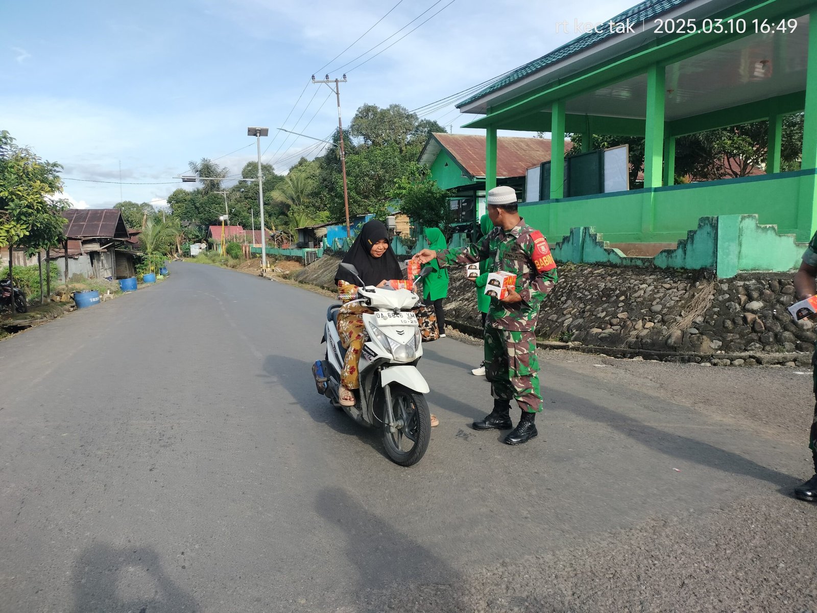 Seperti halnya yang dilakukan Babinsa Koramil 1001-01/Juai Kodim 1001/HSU-BLG, di bulan yang penuh berkah ini membagikan takjil buka puasa secara gratis kepada para pengguna jalan yang melintas di depan kantor Koramil setempat, Senin (15/03/2025).