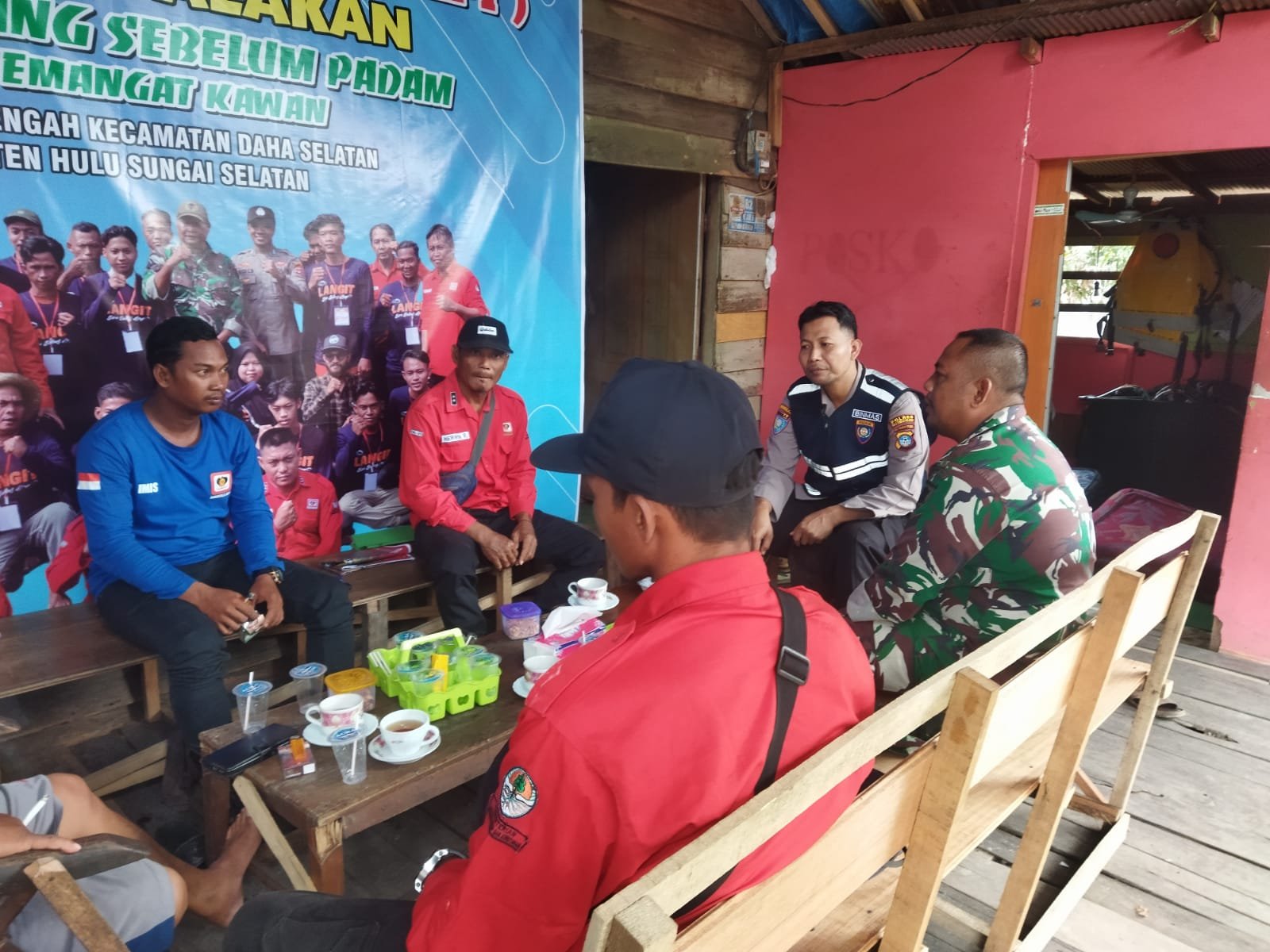 Hulu Sungai Selatan – Bintara Pembina Desa (Babinsa) Koramil 1003-08/Daha Selatan Sertu Mawardi bersama Bhabinkamtibmas melaksanakan Komunikasi Sosial (Komsos) di Desa Tambak Bitin Kecamatan Daha Selatan Kabupaten Hulu Sungai Selatan (HSS).