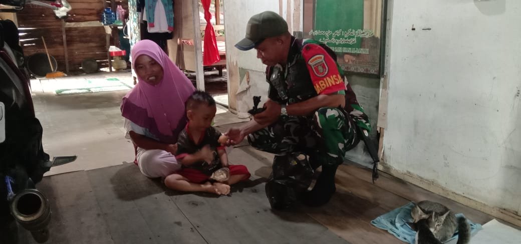 Kegiatan kali ini dilaksanakan oleh Babinsa Koramil 1005-08/Anjir Muara dengan memantau tumbuh kembang anak penderita Stunting. Sebagai bentuk kepedulian terhadap perkembangan anak di wilayah binaannya, serta memberikan tambahan gizi sebagai dukungan moril.