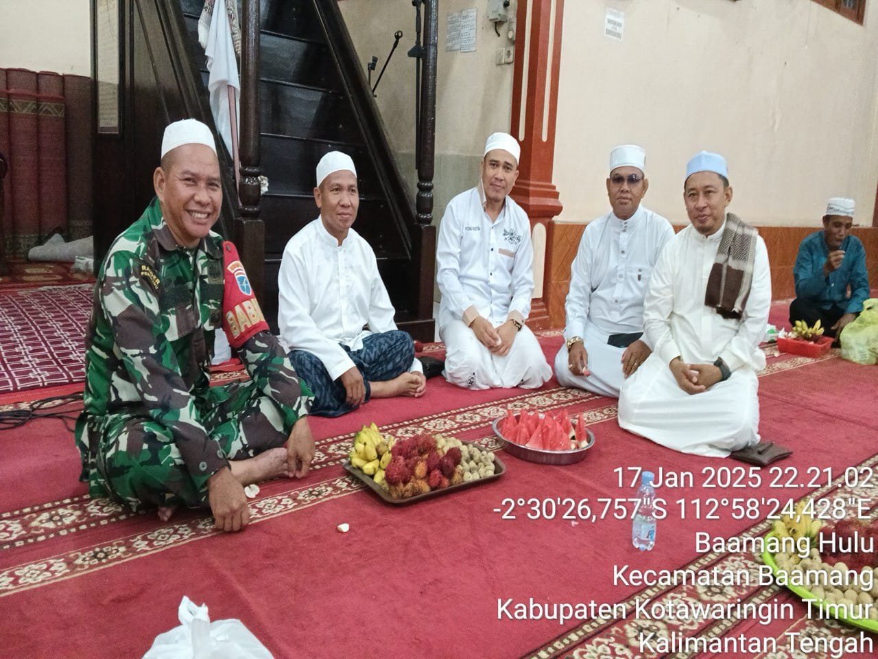 Kotawaringin Timur – Babinsa Koramil 1015-04/Baamang Serka Iskandar Menghadiri acara memperingati isra mi’raj Nabi Muhammad SAW 1446 H, Di masjid Al Hidayah Jalan Cristopel Mihing RT.26,RW.02,Kelurahan Baamang Hulu,Kec.Baamang,Kab.Kotim,jum’at Malam(17/01)