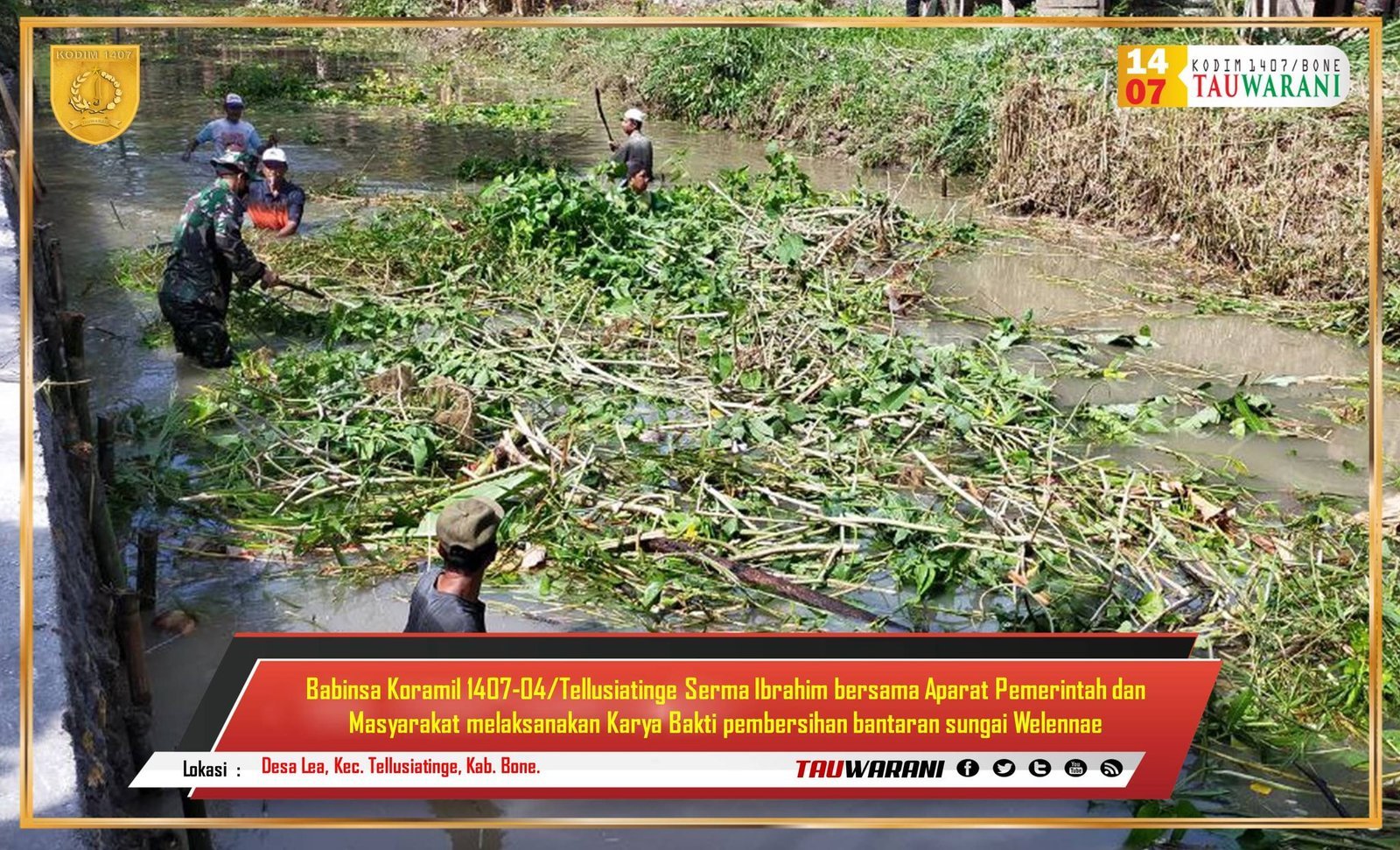 Bone, 6 Februari 2025 – Babinsa Koramil 1407-04/Tellusiatinge, Serma Ibrahim, bersama aparat pemerintah dan masyarakat setempat, melaksanakan kegiatan Karya Bakti pembersihan bantaran Sungai Welennae di Desa Lea, Kecamatan Tellusiatinge, Kabupaten Bone.
