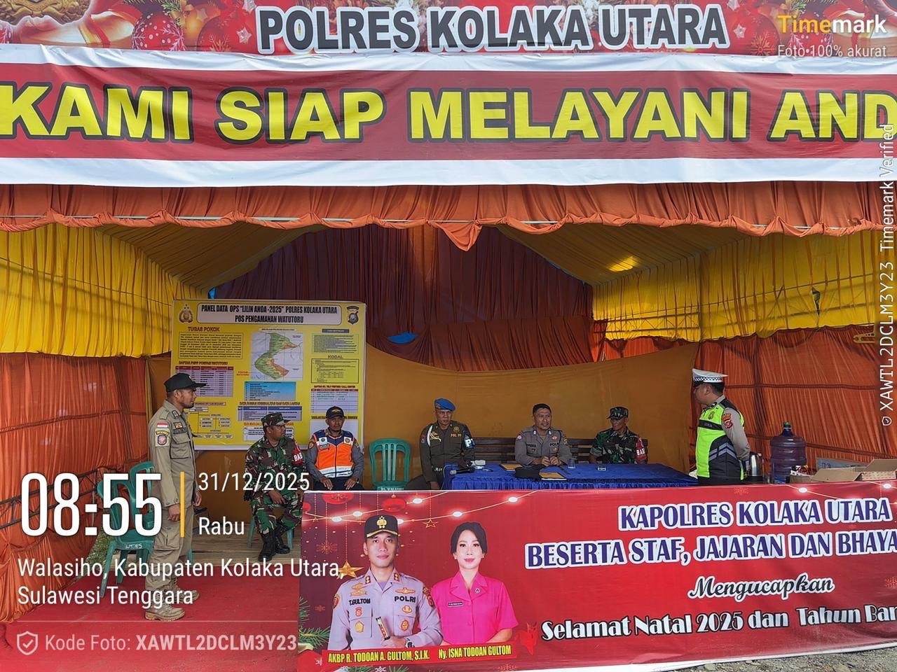 Kolaka Utara, 31 Desember 2025 – Dalam rangka menyambut perayaan Natal dan Tahun Baru, Babinsa dari Koramil 1412-08/Ranteangin Kodim 1412/Kolaka melaksanakan pengamanan di Pos Pengamanan (Pos Pam) yang berlokasi di Desa Walasiho, Kecamatan Wawo, Kabupaten Kolaka Utara. Kegiatan ini dilakukan untuk memberikan rasa aman dan nyaman kepada masyarakat serta mengantisipasi potensi gangguan keamanan yang mungkin terjadi.