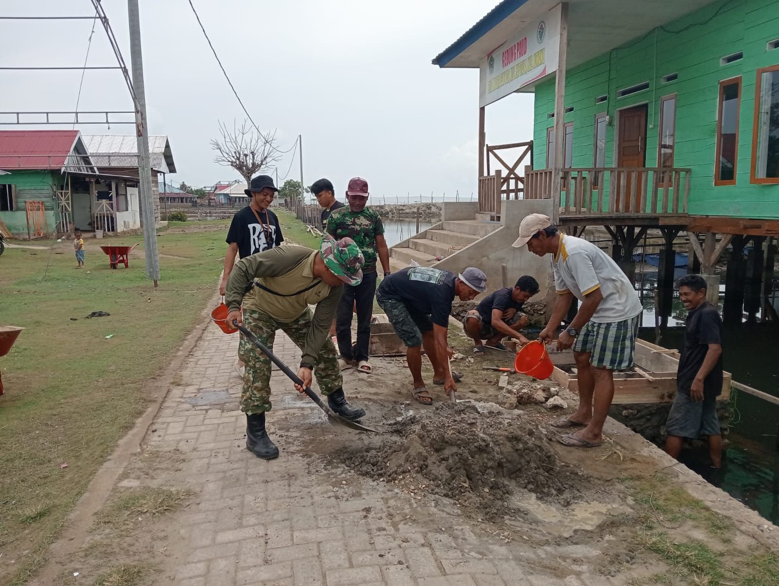 Konawe – Anggota Babinsa dari Koramil 1417-07/Sampara, Kodim 1417/Kendari, menunjukkan kepedulian terhadap lingkungan dengan berpartisipasi dalam pembangunan tempat pembuangan sampah (bak sampah) di Desa Muara Sampara, Kecamatan Kapoila, Kabupaten Konawe, pada Sabtu (7/2).
