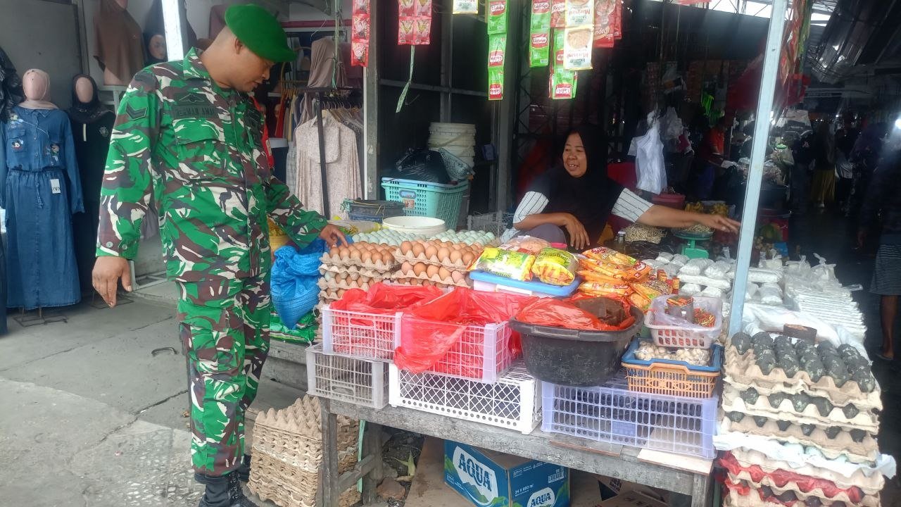 Dalam pemantauannya, Sertu Herman Amal berinteraksi secara langsung dengan para pedagang untuk memeriksa harga komoditas pokok seperti beras, minyak goreng, telur, gula pasir, dan bumbu dapur.