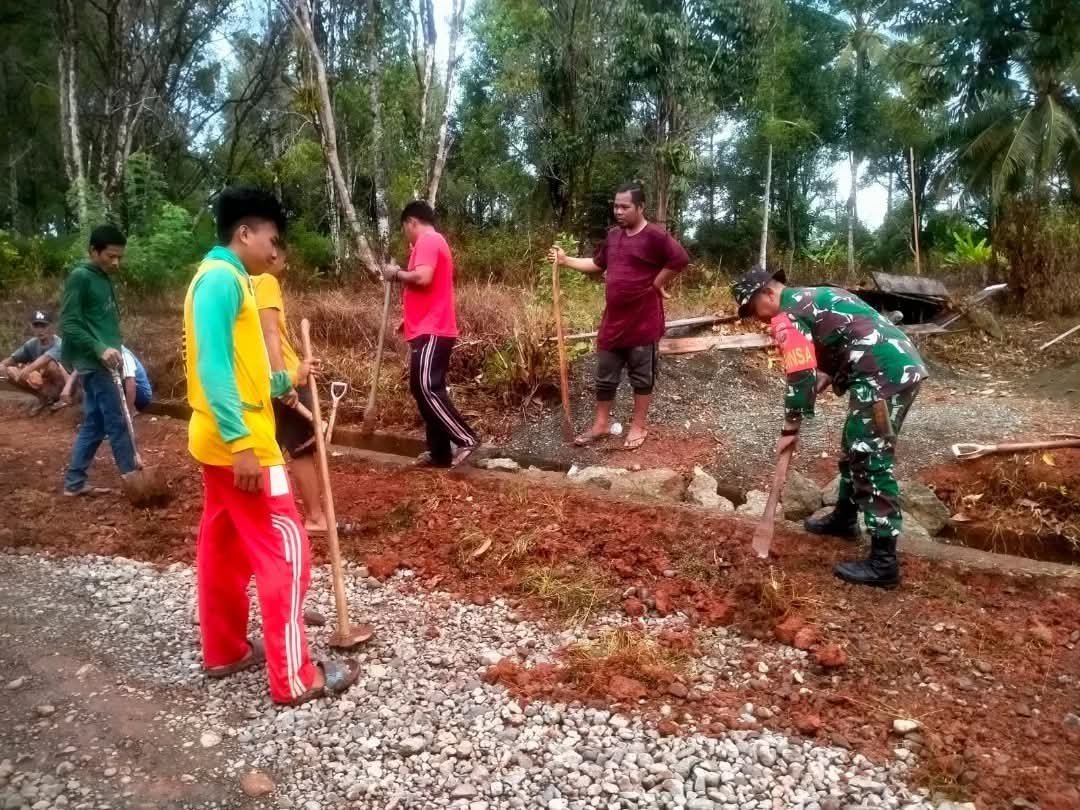 Babinsa Koramil 1420-05/Dua Pitue Bersama Warga Gotong Royong Perbaiki Jalan Desa