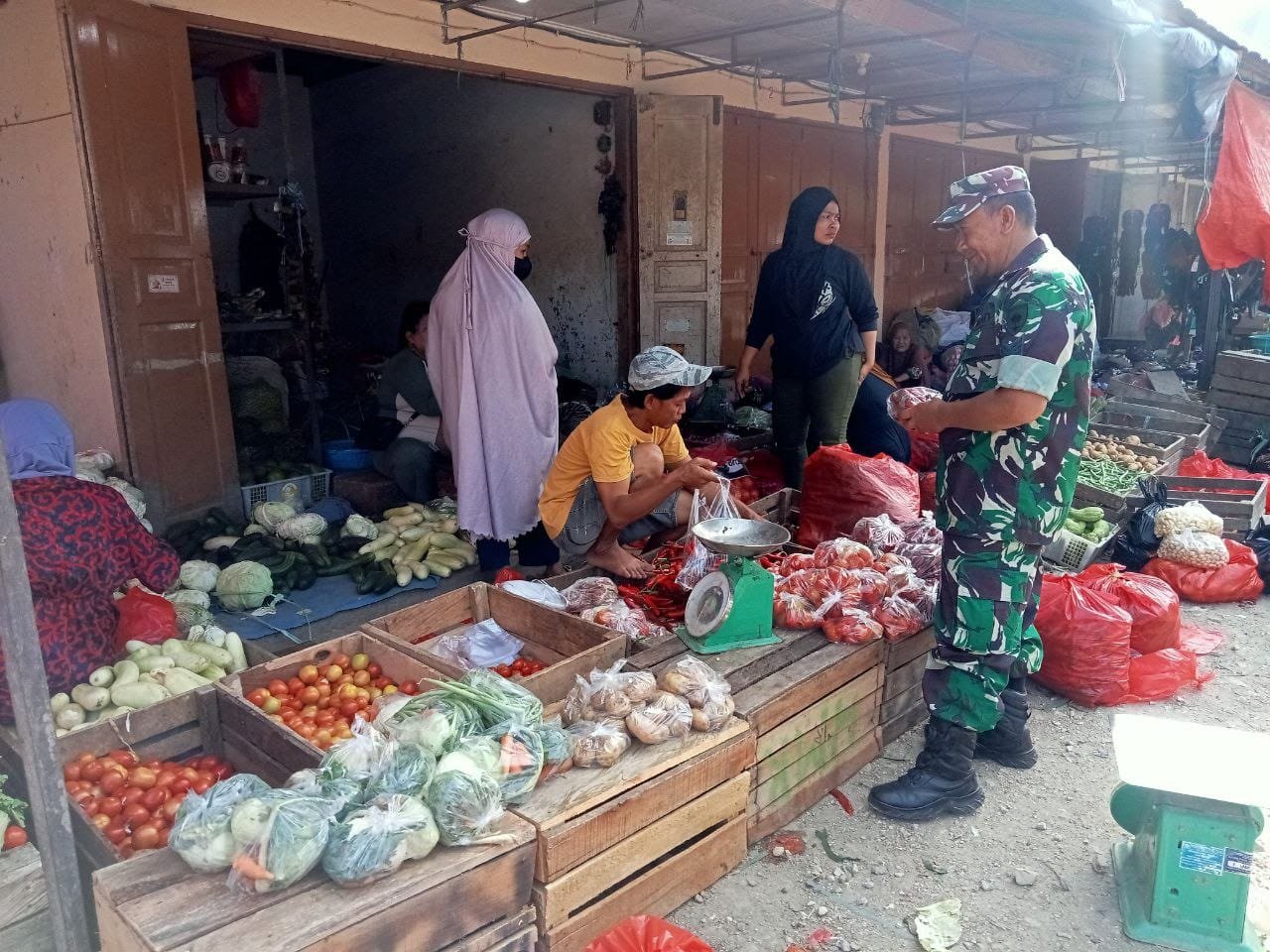 SIDRAP – Untuk memastikan ketersediaan dan stabilitas harga kebutuhan pokok masyarakat, Babinsa dari Koramil 1420-06/Panca Rijang, Serma Syahniawan Dani, melaksanakan pemantauan di Pasar Sentral Rappang, Kecamatan Panca Rijang, Kabupaten Sidrap pada Jumat pagi, 27 Maret 2026. Kegiatan ini adalah bagian dari arahan komando atas yang bertujuan untuk mendukung pemerintah daerah dalam mengawasi perubahan harga dan mencegah penimbunan barang yang dapat merugikan warga.