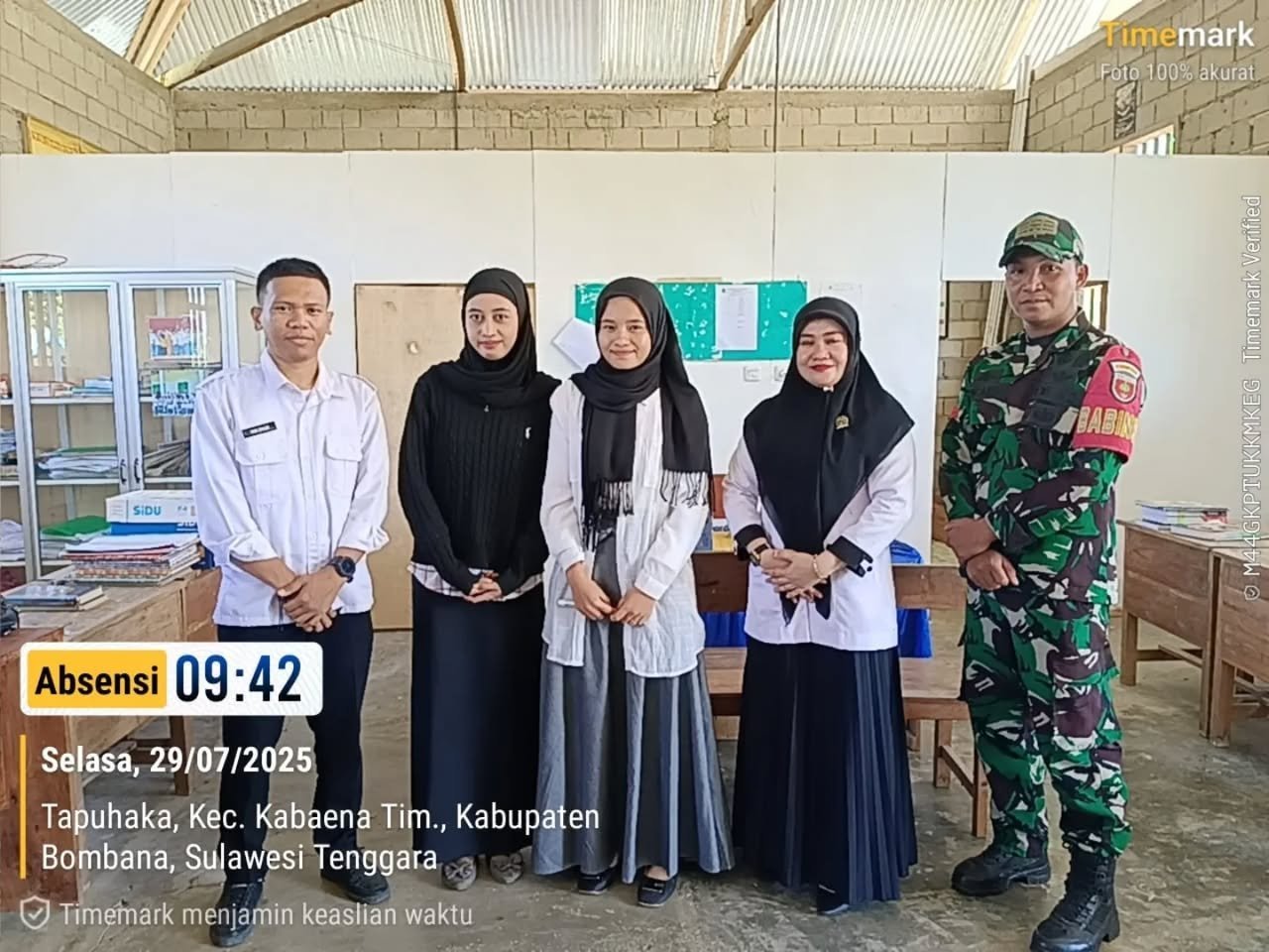 Bombana — Dalam upaya mendukung program pemerintah untuk meningkatkan gizi anak sekolah, Babinsa Koramil 1431-02/Kabaena, Praka Rahmat Wisudawan, terjun langsung mendampingi pelaksanaan survei jumlah penerima manfaat program Makan Bergizi Gratis (MBG) di wilayah Kecamatan Kabaena Timur, Kabupaten Bombana. Selasa, (29/07/2025)