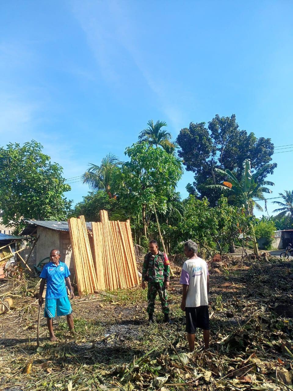 NTT-SIKKA. Babinsa Desa Wairkoja Koramil 1603-04/Kewapante Kopda Riqab Sulaiman jalin silaturahmi bersama tokoh masyarakat di Desa Wairkoja, Kecamatan Kewapante, Kabupaten Sikka, Senin (07/04/2025).