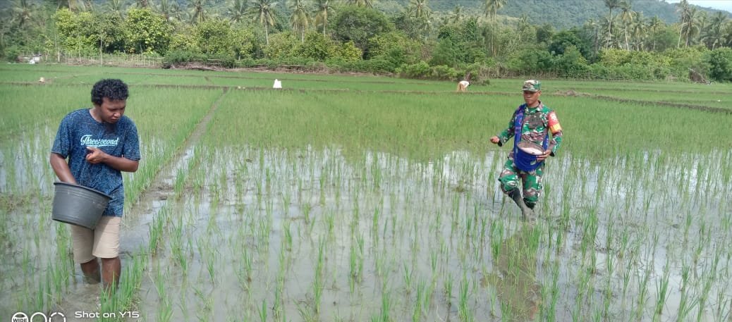 Sertu Khaerudin tidak hanya memberikan arahan, tetapi juga turun tangan membantu petani dalam proses pemberian pupuk pertama pada tanaman padi. Ia memastikan bahwa pencampuran pupuk dilakukan dengan tepat, volume air yang digunakan optimal, dan pemeliharaan tanaman berjalan sesuai prosedur. “Kami hadir untuk memastikan petani mendapatkan pendampingan yang tepat. Dengan teknik yang benar, diharapkan hasil panen meningkat dan kesejahteraan petani semakin membaik,” ujarnya.