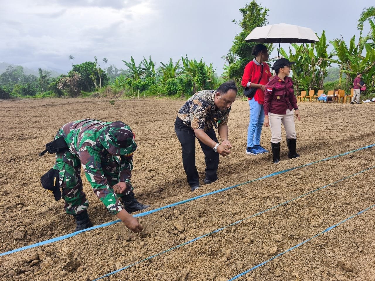 Babinsa Koramil 1801-01/Manokwari Bersama Pegawai Lapas Perempuan III Tanam Jagung Di Lahan Pertanian