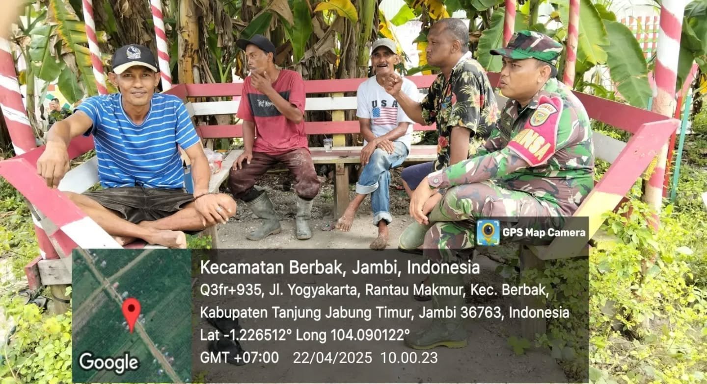Kuala Tungkal, Kodimtanjab.com – Kopda Desrianto, Babinsa Koramil 419-06/Rantau Rasau, melaksanakan Komunikasi Sosial (Komsos) bersama masyarakat Desa Rantau Makmur, Kecamatan Berbak, pada Selasa (22/04/2025)