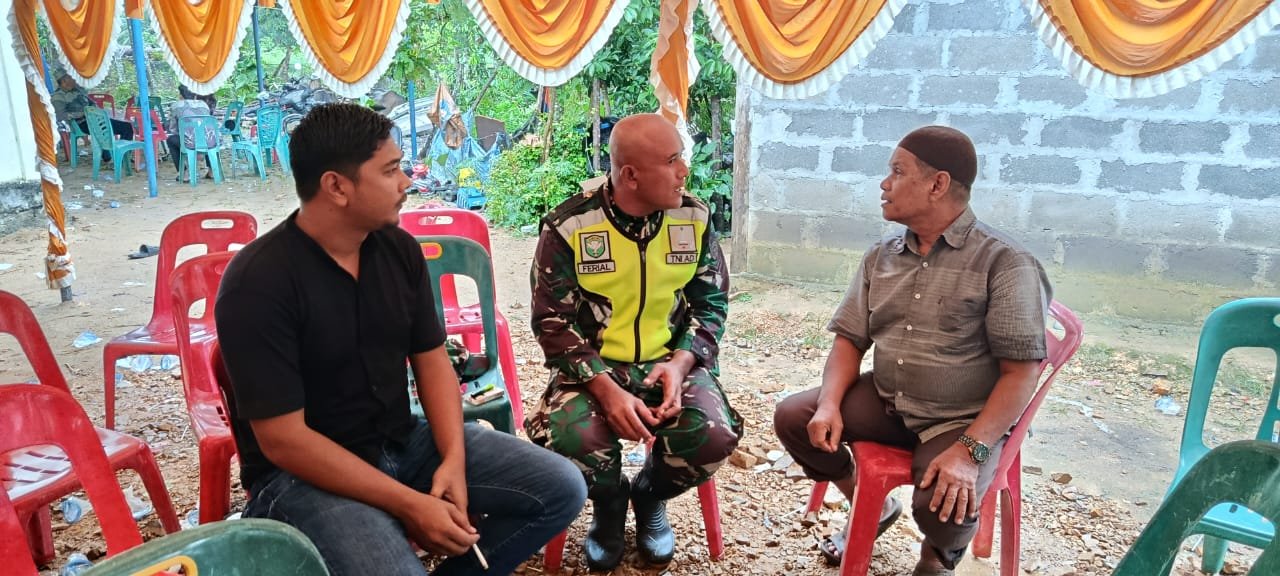 ACEH JAYA – Menunjukkan komitmennya terhadap kemanunggalan TNI dengan rakyat, Babinsa Koramil 03 Setia Bakti, Kodim 0114/Aceh Jaya, Serda Ferial Suzanto, secara aktif menjalin silaturahmi yang erat dengan masyarakat di Desa Padang, Kecamatan Setia Bakti, Kabupaten Aceh Jaya, Kamis (24/07). Dedyikasinya tidak hanya terbatas pada kehadiran di acara resepsi pernikahan, namun meluas hingga keterlibatan aktif dalam berbagai persiapan acara, membuktikan peran Babinsa yang sesungguhnya sebagai garda terdepan di tengah masyarakat.
