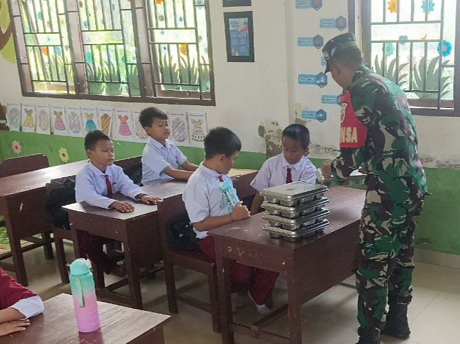 Konawe – Anggota Babinsa dari Koramil 1417-06/Unaaha yang merupakan bagian dari Kodim 1417/Kendari, melaksanakan pendampingan langsung dalam kegiatan penyaluran Makan Bergizi Gratis (MBG) di Kelurahan Ambekairi, Kecamatan Unaaha, Kabupaten Konawe, pada hari Senin, 9 Februari.