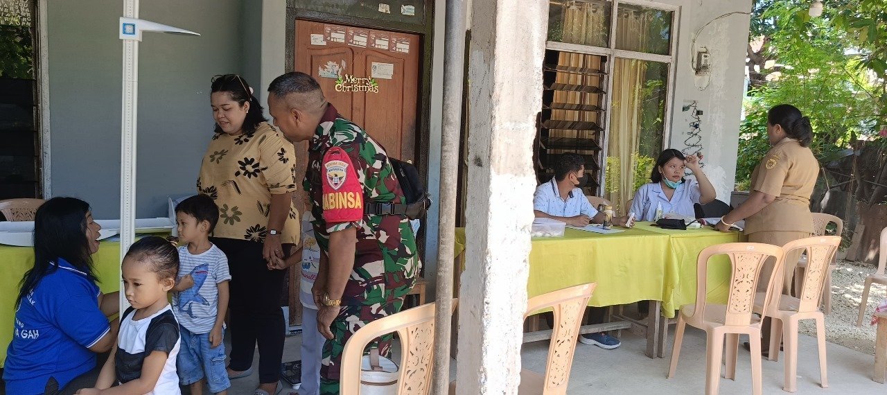 NTT – Kupang Babinsa Sertu Aleixo Maia Koramil 1604-01/Kupang, bersama Sekretaris Lurah Airnona, Ibu Antje, dan Staf Kelurahan, Bapak Kristian Jami.melaksanakan pemantauan Posyandu ILP (Integrated Service Post) yang melayani semua usia. Acara yang berlangsung di RT 19 RW 05 ini juga melibatkan petugas kesehatan dari Puskesmas Bakunase serta para ibu-ibu kader posyandu setempat. Selasa (07/01/2025).