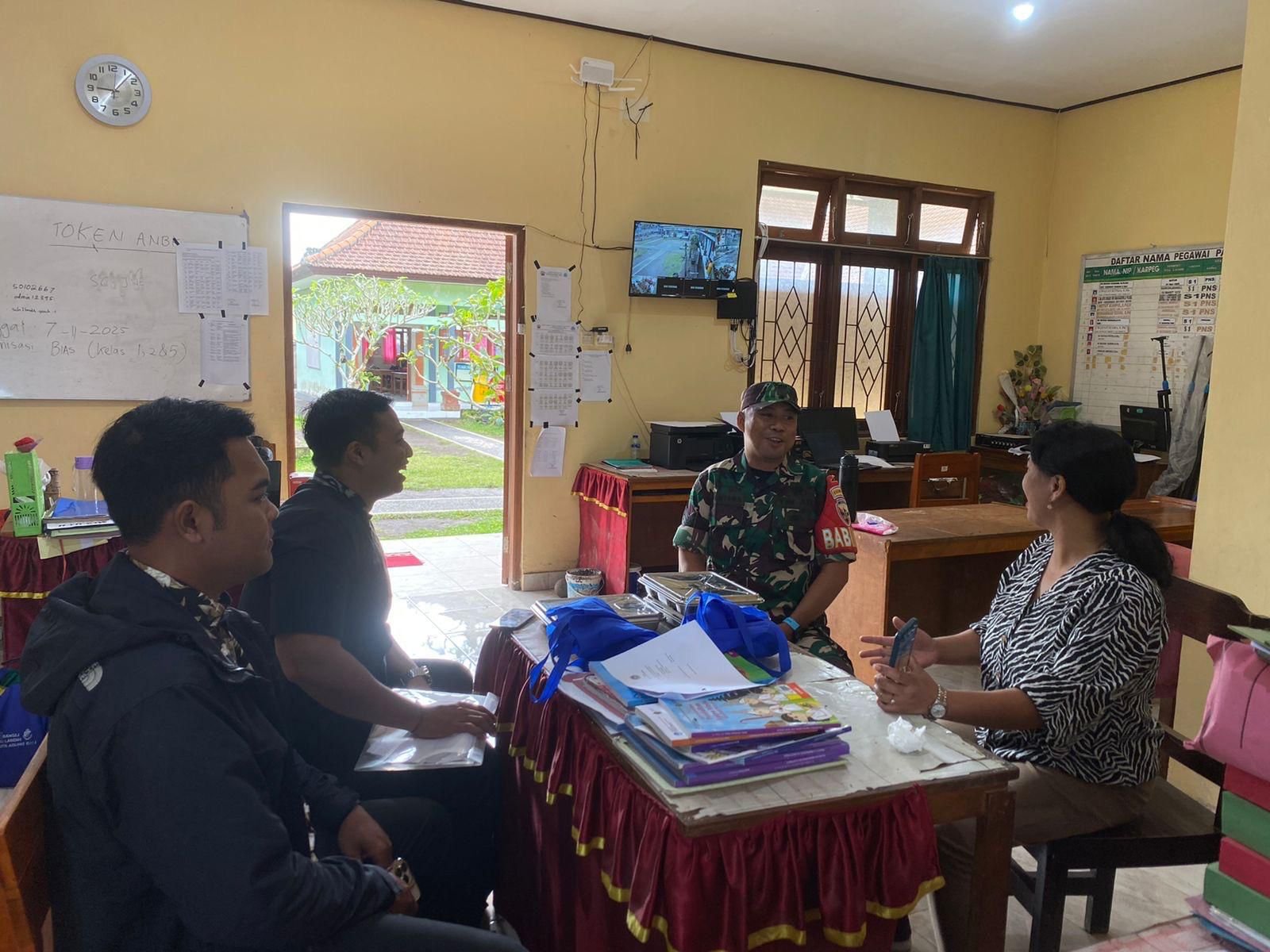 Bangli – Dalam upaya meningkatkan sinergi dan memastikan pelaksanaan Program Makan Bergizi Gratis (MBG) berjalan lancar, Babinsa Desa Landih dari Koramil 1626-01/Bangli, Serma I Komang Juni Suantara, bersama Kepala SPPG Bangli Landih, Dewa Gede Ngakan Kelaci Permana Putra, SM., melaksanakan kegiatan Komunikasi Sosial (Komsos) dengan Kepala Sekolah SD Negeri 1 Landih, Ni Wayan Kariami, S.Pd.SD. Kegiatan ini berlangsung pada Rabu, 4 Maret 2026, di Kecamatan Bangli.