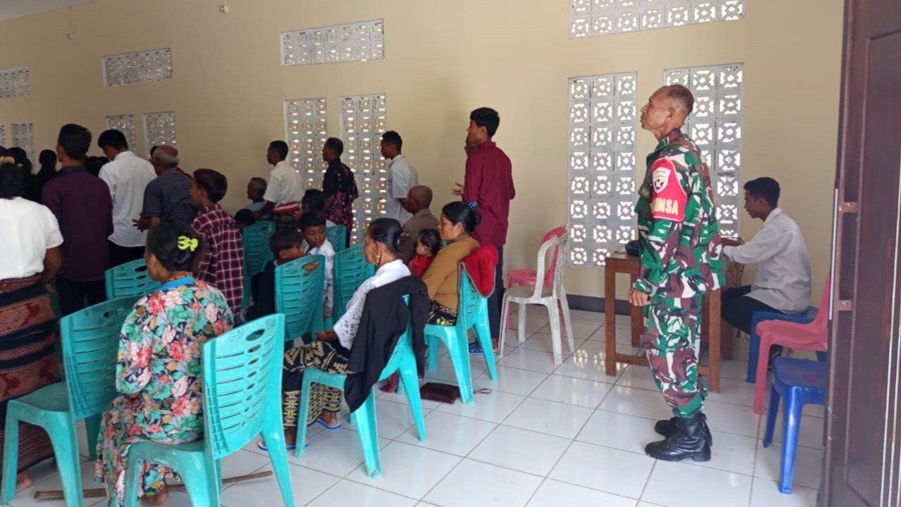 Ibadah Minggu di Gereja GBI Talitakum Ledeae berjalan dengan khidmat, dihadiri oleh jemaat setempat yang melaksanakan ibadah dengan penuh penghayatan. Serka Yestermas Pelang, selain mengamankan jalannya ibadah, juga bergabung bersama jemaat dalam doa dan pujian, sebagai wujud kepedulian TNI terhadap kehidupan masyarakat di wilayah binaannya.