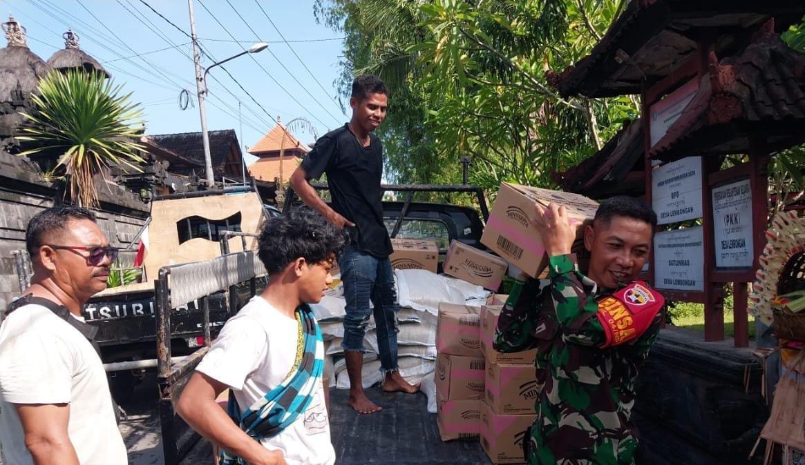 Klungkung,- Sebagai bentuk pelayanan dan kepedulian TNI akan kesejahteraan masyarakat, Babinsa Lembongan Koramil 1610-04/Nusa Penida Koptu Kuswara melaksanakan pendampingan dan pengawasan distribusi bantuan pangan beras dan minyak goreng Desa lembongan dan Jungutbatu, Rabu ( 26/11/25 ).