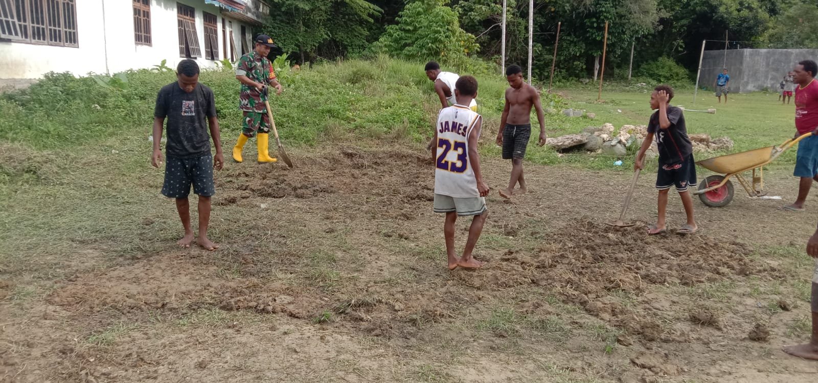 MANOKWARI – Dalam rangka menyalurkan hobi warga binaannya, Babinsa Koramil 1801-05/Manokwari Utara ajak Pemuda Karang Taruna menyiapkan lahan dan buat lapangan voli di Kampung Yoom 1 Distrik Manokwari Utara, Kabupaten Manokwari, Provinsi Papua Barat, Minggu (23/03/2025).
