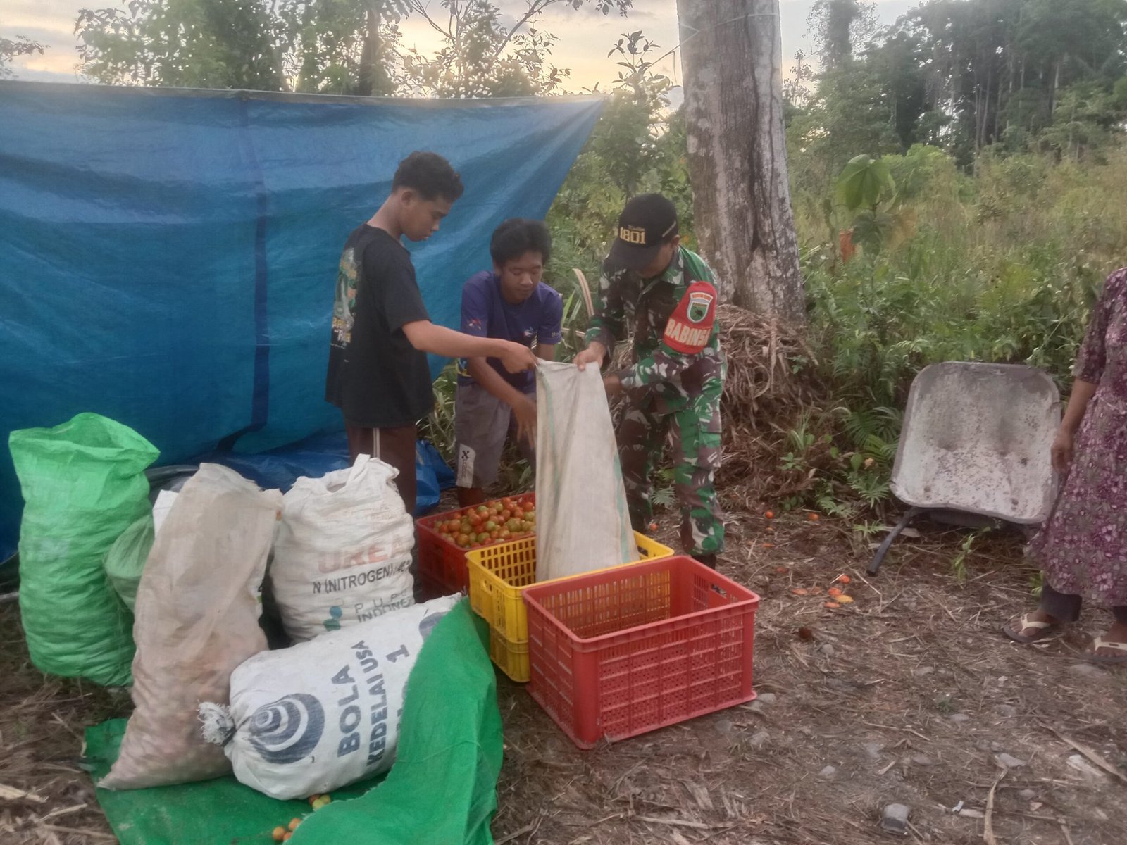 MANOKWARI – Guna menunjukkan perannya dalam mendukung ketahanan pangan di wilayah binaan. Babinsa Koramil 1801-03/Masni Sertu Sigit Irianto membantu petani dalam proses panen tomat di Kampung Muara Wareori Distrik Masni Kabupaten Manokwari, Provinsi Papua Barat, Jumat (14/03/2025).