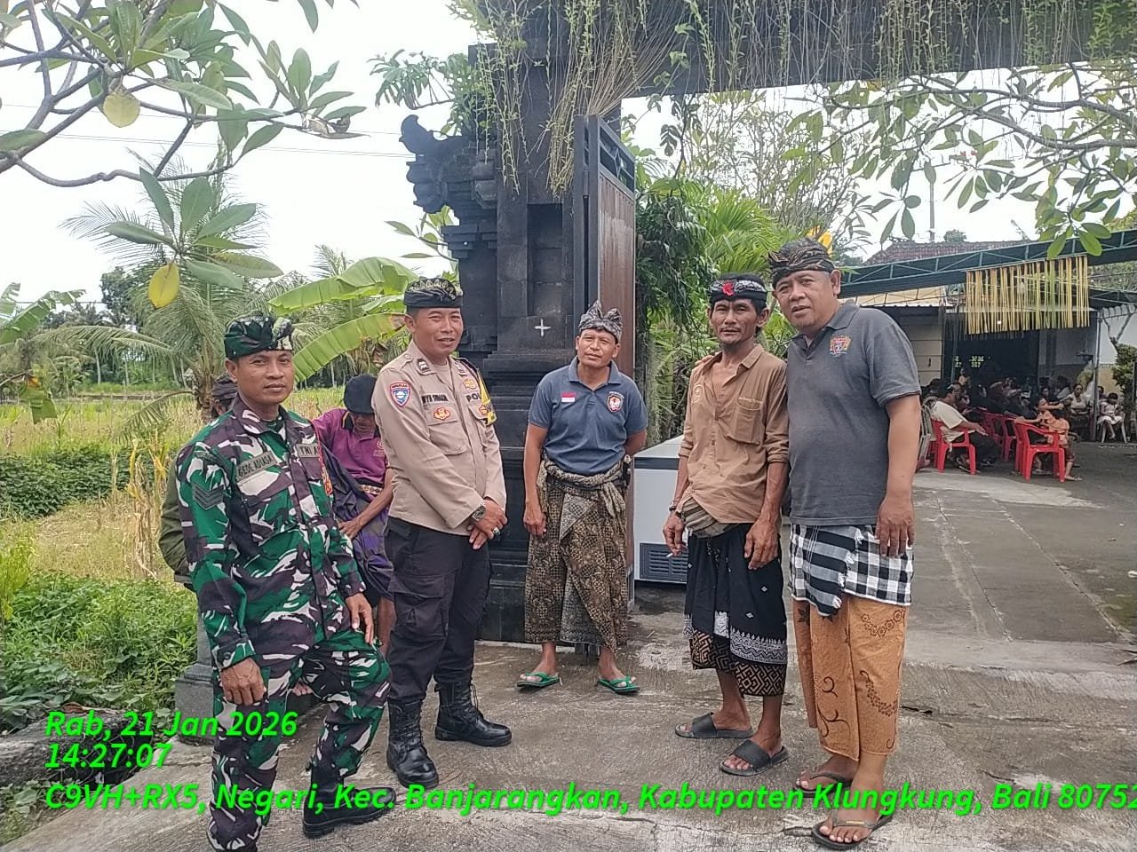 Klungkung, – Dalam upaya memastikan keamanan dan kelancaran prosesi upacara pengabenan, Babinsa Negari dari Koramil 1610-02/Banjarangkan, Serka Gede Adiasa, melaksanakan pengawalan pada Rabu, 21 Januari 2026. Pengamanan ini berlangsung di Dusun Sarimertha, Desa Negari, Kecamatan Banjarangkan, Kabupaten Klungkung, saat prosesi untuk almarhumah Gusti Ayu Wenten.