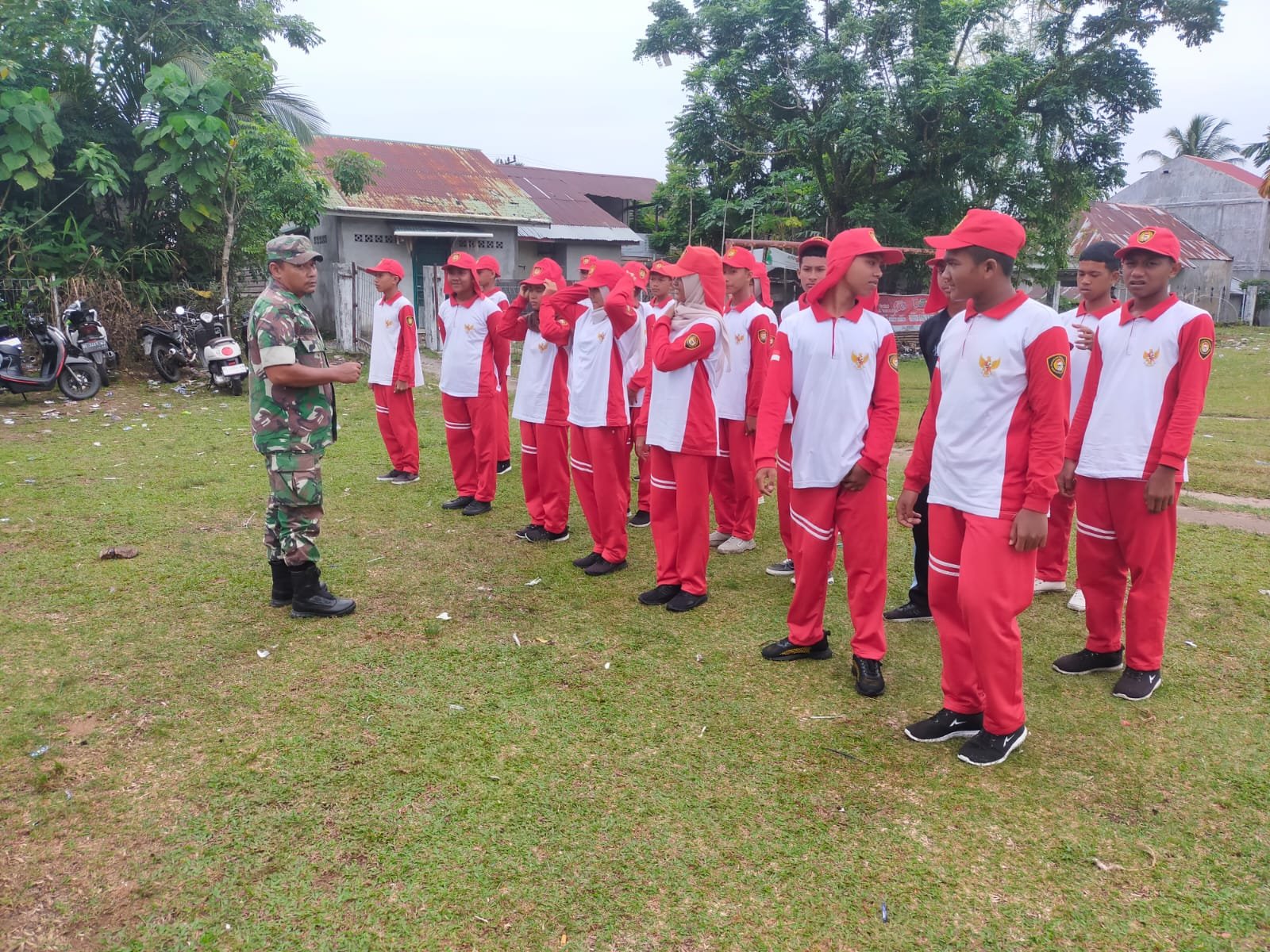 ACEH JAYA – Dalam upaya menanamkan nilai-nilai kebangsaan sejak dini, Babinsa Koramil 05/Panga, Kodim 0114/Aceh Jaya, Serda M. Ambri, melaksanakan kegiatan kelas lapangan yang berfokus pada wawasan kebangsaan. Kegiatan ini ditujukan kepada siswa-siswi SMA Negeri 1 dan SMK yang sedang mengikuti latihan di lapangan Kecamatan Panga, Kabupaten Aceh Jaya, Selasa (12/08).
